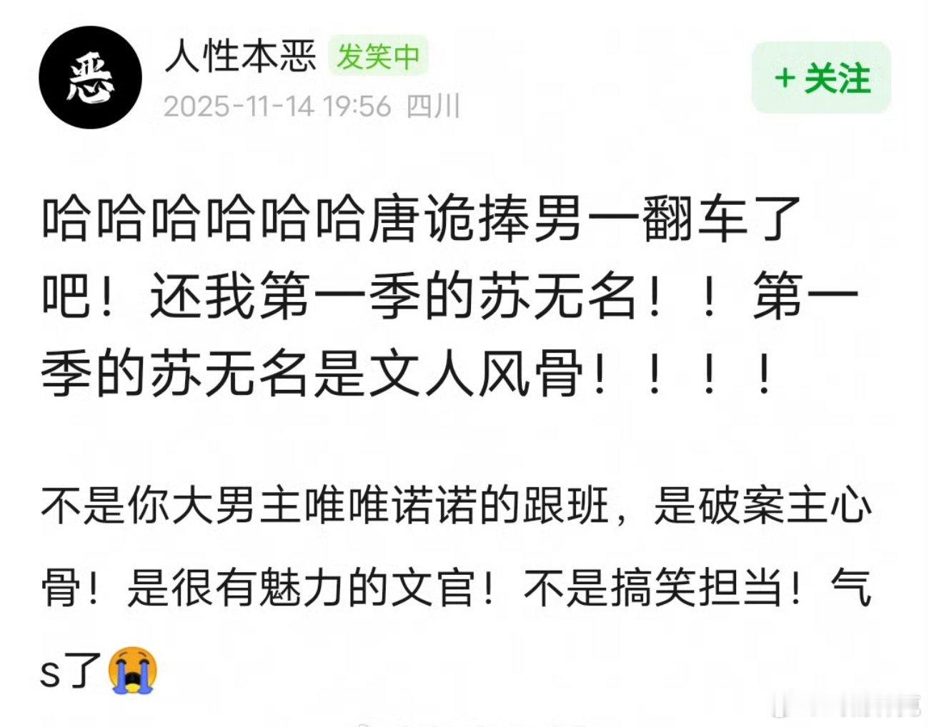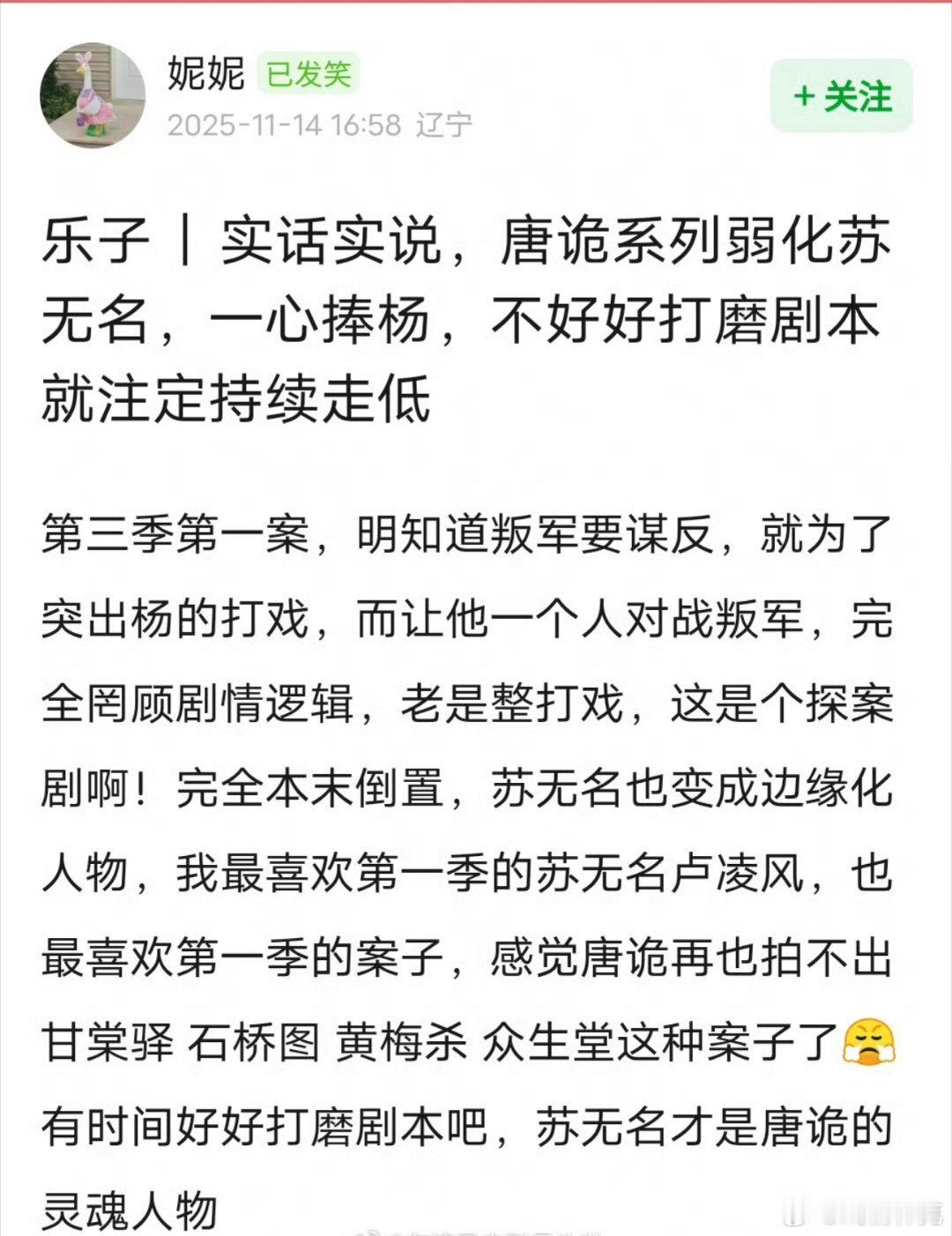 唐诡3的口碑好像也崩盘了,剧情越来越突出卢凌风,苏无名像个可有可无的小跟班,变成