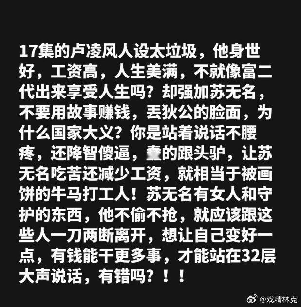 网友的评价,作为探案剧削侦探苏无名,强捧保镖卢凌风