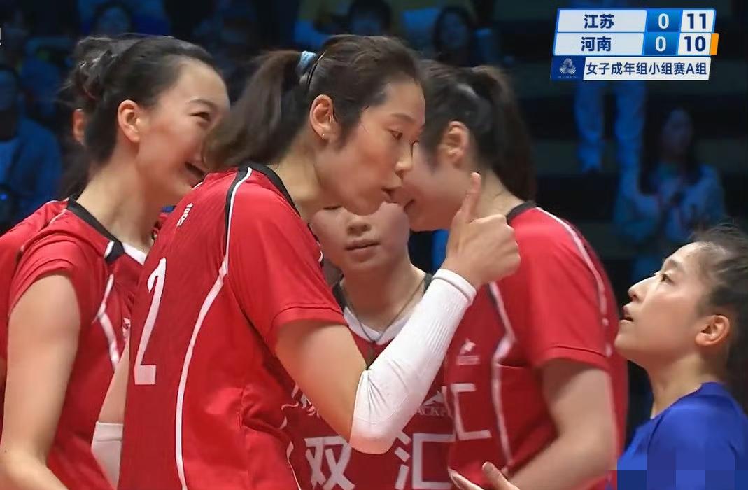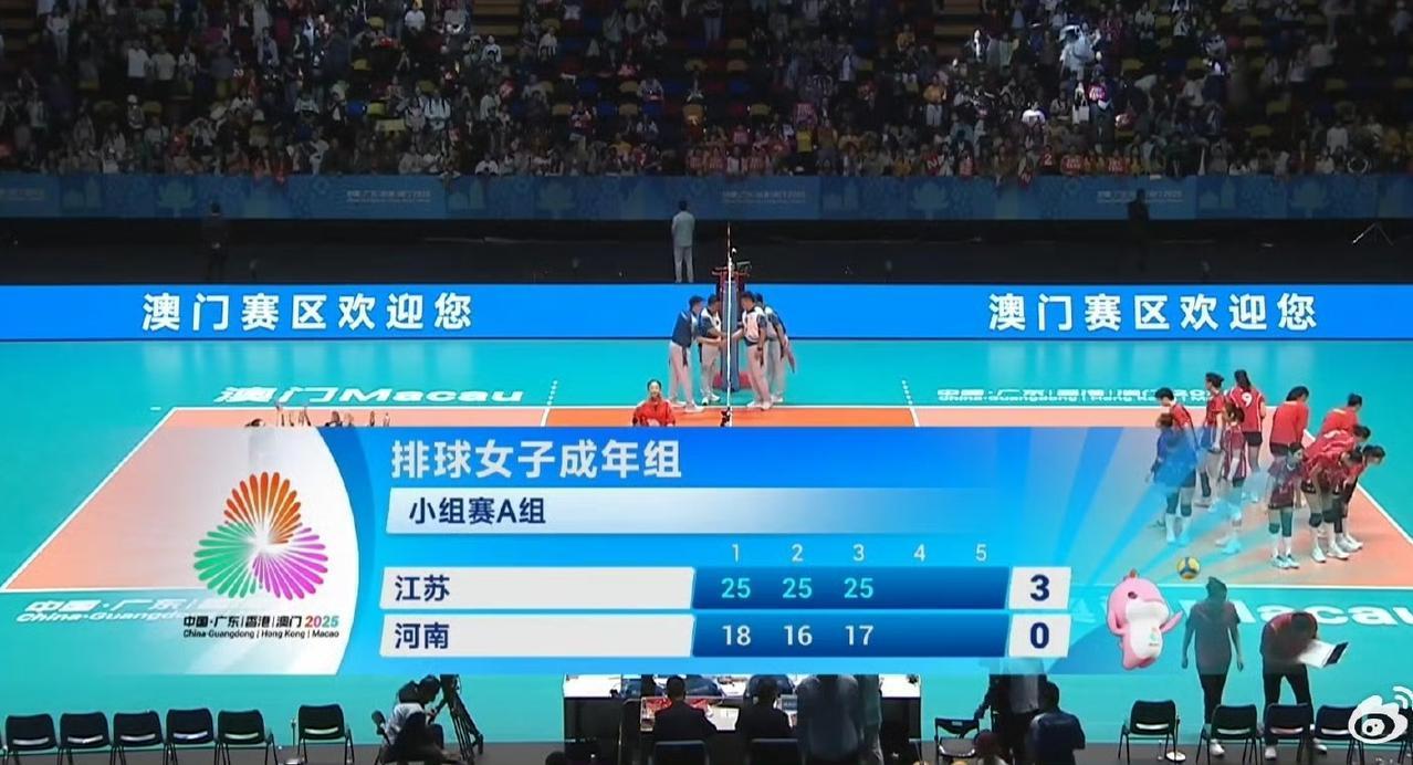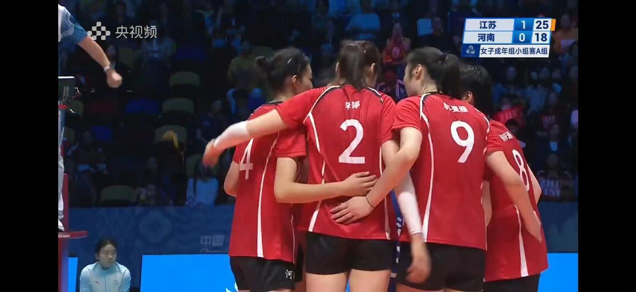 河南女排0:3不敌国手云集的江苏女排(18:25/16:25/17:25),无缘小组第一。江苏女排还是强在一传,防守和小球串联,粘性很强,又有吴梦洁的强攻,很难突破。朱婷被卡在后排,前排进攻不下球,又拦不住对方的反击。第三局朱婷干脆休战,教练也是战术性放弃,还是得好好部署八进四的比赛。 其他场次赛果: 辽宁女排3:0香港女排 广东女排3:2浙江女排 福建女排3:0山东女排,有点意外,山东女排对庄雨珊毫无办法。 云南女排3:0澳门女排 天津女排3:1北京女排