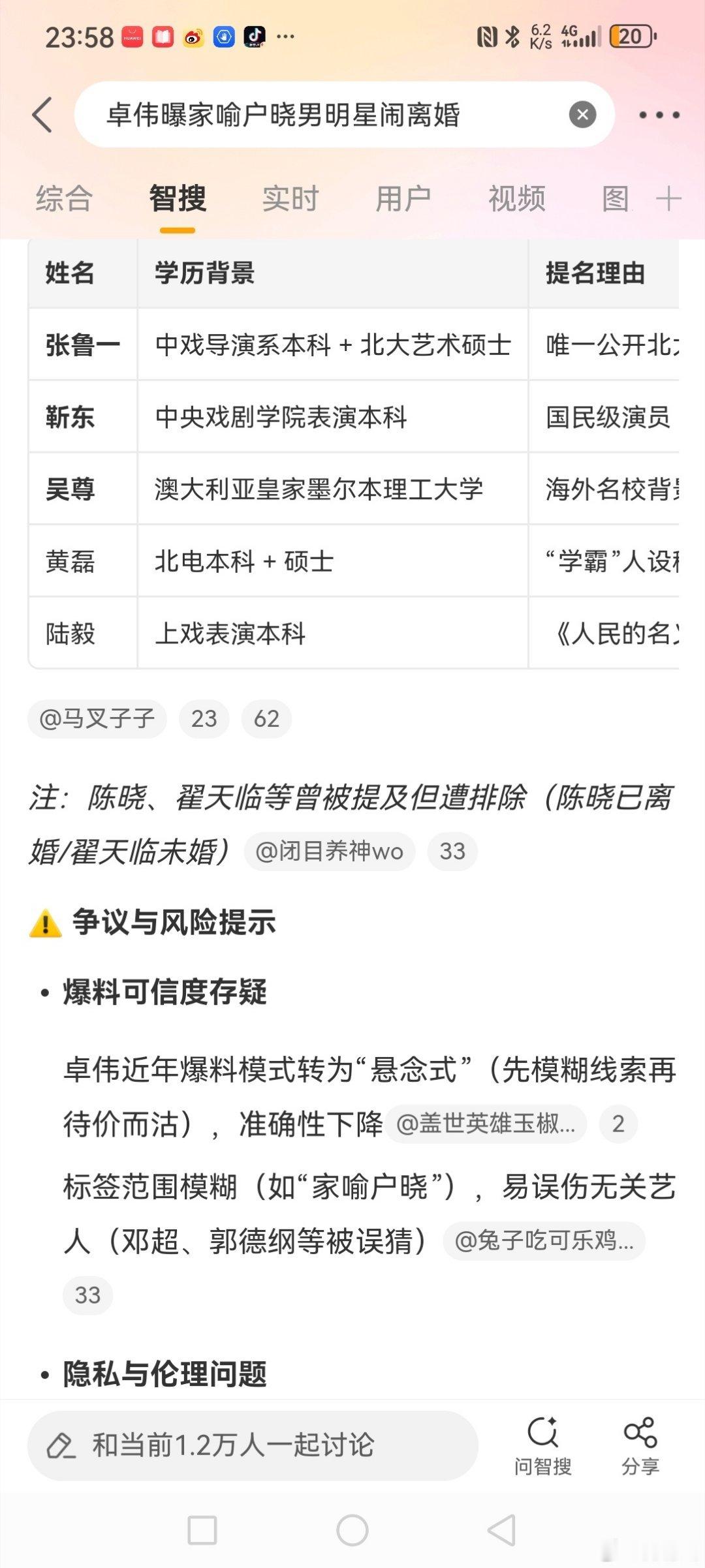 著名狗仔卓伟近日曝国内一位知名度很高、家喻户晓的男明星,正在与妻子闹离婚,两人彻底反目,已经分居两年多,他的形象很正面,还是高学历。 不知卓伟爆料的是哪一位男明星?!