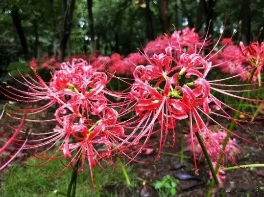 彼岸花,也称曼珠沙华,花开的时候没有叶子,叶子生长时,没有花,花语是无望的爱。