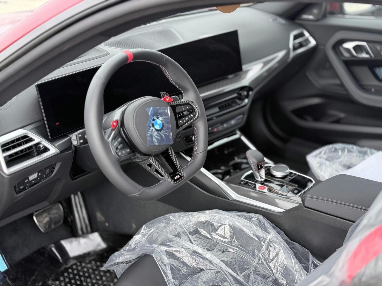 2025年1月,宝马M2,它官方指导价36.39万元,是专为中国市场打造的“性能钢炮”。 火焰红车漆让它视觉冲击力拉满,前脸熏黑双肾格栅搭配可点亮边框,“恶魔耳”后视镜和M专属红色四活塞卡钳,像头猛兽。车身侧面,加长110mm轴距达2780mm,溜背造型与半隐藏式门把手,优雅又动感。车尾四出排气和倒L形LED尾灯,驻车都吸睛。 性能上,它搭载最强2.0T发动机,300马力,峰值扭矩400N·m,配合四驱系统,5秒破百。弯道中M自适应悬架支撑性惊人,前桥托森差速器让高速过弯超稳定。这颜值与实力并存的车,谁能不爱?