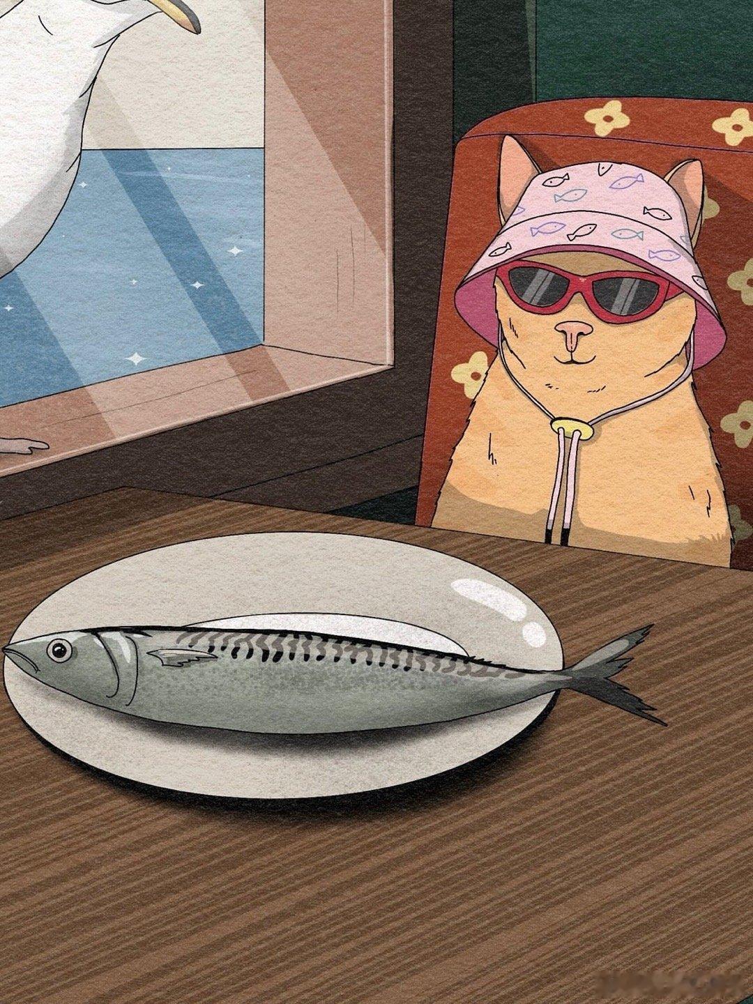 海鸥围观小猫吃鱼🐟..cr:christina.pencil