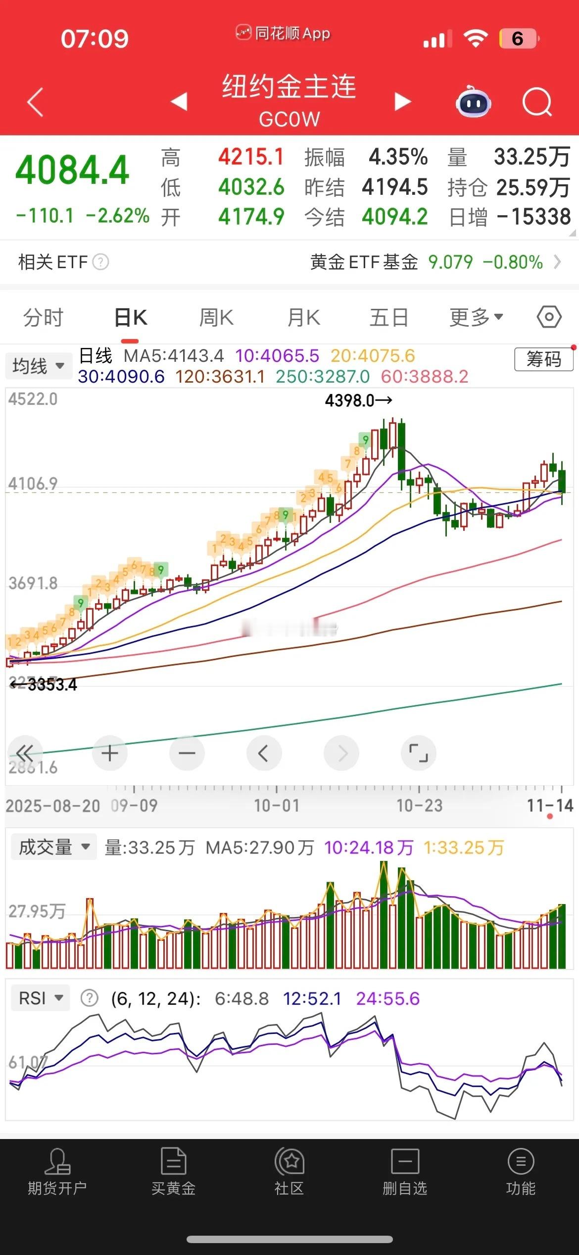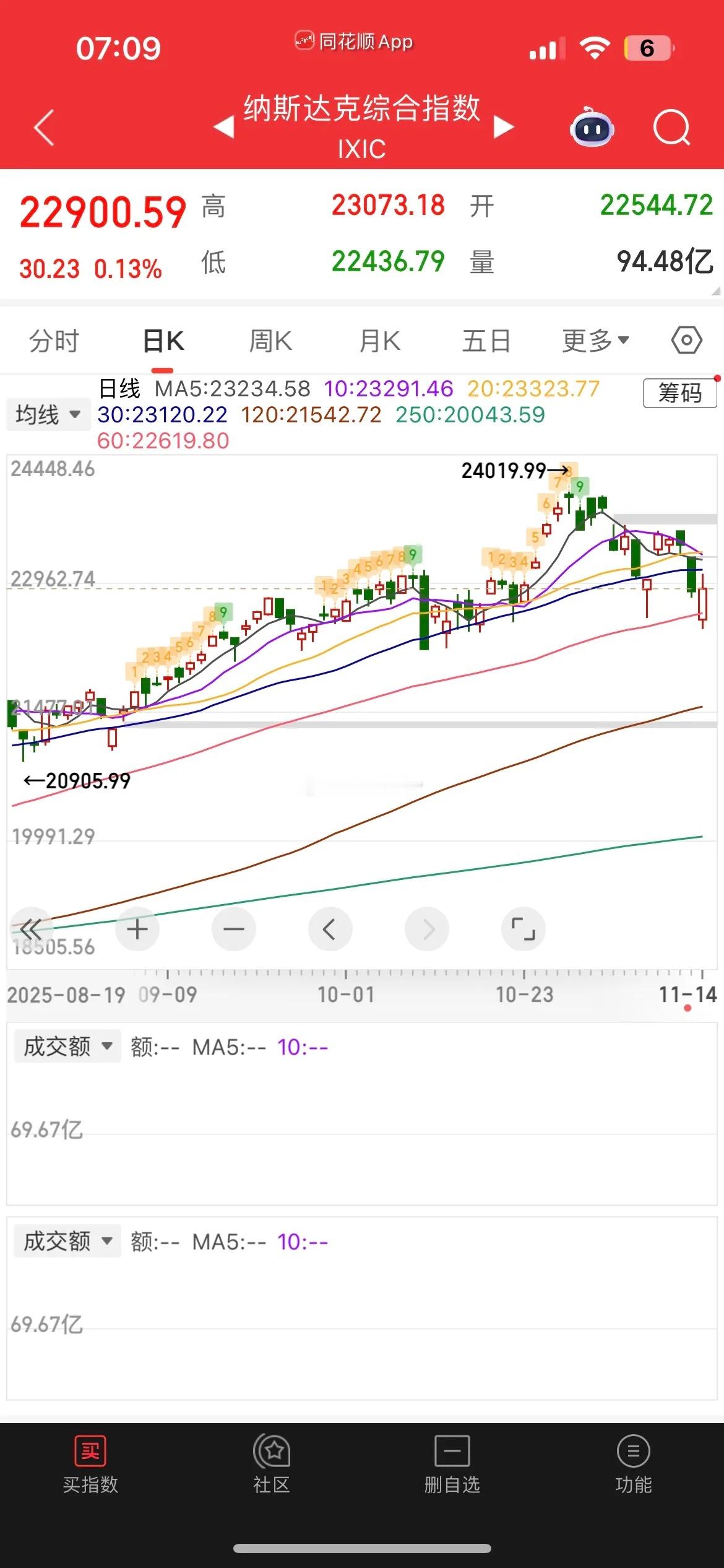 一觉醒来,黄金白银暴跌,纳指金龙指数跌1.6%,中概股普跌,阿里大跌近4%,拼多多跌逾2%,京东大跌超4%,哔哩涨逾1%,百度大跌近4%,大全新能源涨超5%,阿特斯太阳能暴涨超17%,富时A50跌0.16%,恒生主连跌0.33%,这样看下周我们大A又会小幅低开,不过低开高走概率比较大,还得看量,而港股真拉垮,美股探底回升,恒生主连居然还跳水,完全跟跌不跟涨。昨晚美股探底回升,三大指数涨跌不一,道指跌0.65%,纳指涨0.13%,大型科技股普涨,英伟达跌大涨近2%,此前一度跌近3%,特斯拉涨0.59%,美光科技、闪迪涨超4%,台积电、涨近1%,甲骨文涨超2%,英特尔跌逾1%,还得是美股,人家只要大跌,很快就能V去,所以根本不用担心美股科技股崩盘,会拖累大A。昨天沪指再度失守4000点,双创更是大跌近3%,内资净流出1000多亿,目前两市总成交只有1.9万亿左右,情绪低迷,现在看沪指也跌破5日、10日均线,昨天红利指数也是一路走低,接下来看红利调整概率比较大,也就是下周风格又望迎来切换、红利高股息银调整,双创迎来修复,现在看美股科技股也出现了明显的探底回升,我们双创昨天大跌,完全是受美股科技股印射,本身也处在弱势,板块上昨天存储芯片大幅杀跌,光伏盘中异动拉升,加上中概股阿特斯暴涨,那光伏储能这个方向下周估计还会有所表现,存储应该也会有所修复,现在关键就看小登CPO和半导体何时止跌,这轮它们是砸盘的主对象,市场要想起来,解铃还需系领铃人。点赞就是对峰哥最大支持!