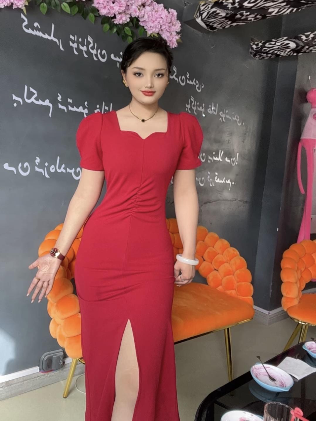 草原上的时尚少女,红黑撞色穿搭,自然风光做背景,美不胜收!🌿👗💃