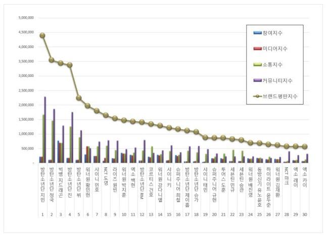 【Starnews】[朴智旻摘得11月男团个人品牌评价一位]据韩国企业评价研究所通过消费者行动分析,2025年10月15日至2025年11月15日测定的755名男团成员的67,621,811个品牌大数据显示,2025年11月男团个人品牌评价第一位是防弹少年团朴智旻,第二位是防弹少年团田柾国,第三位是BIGBANG权志龙。