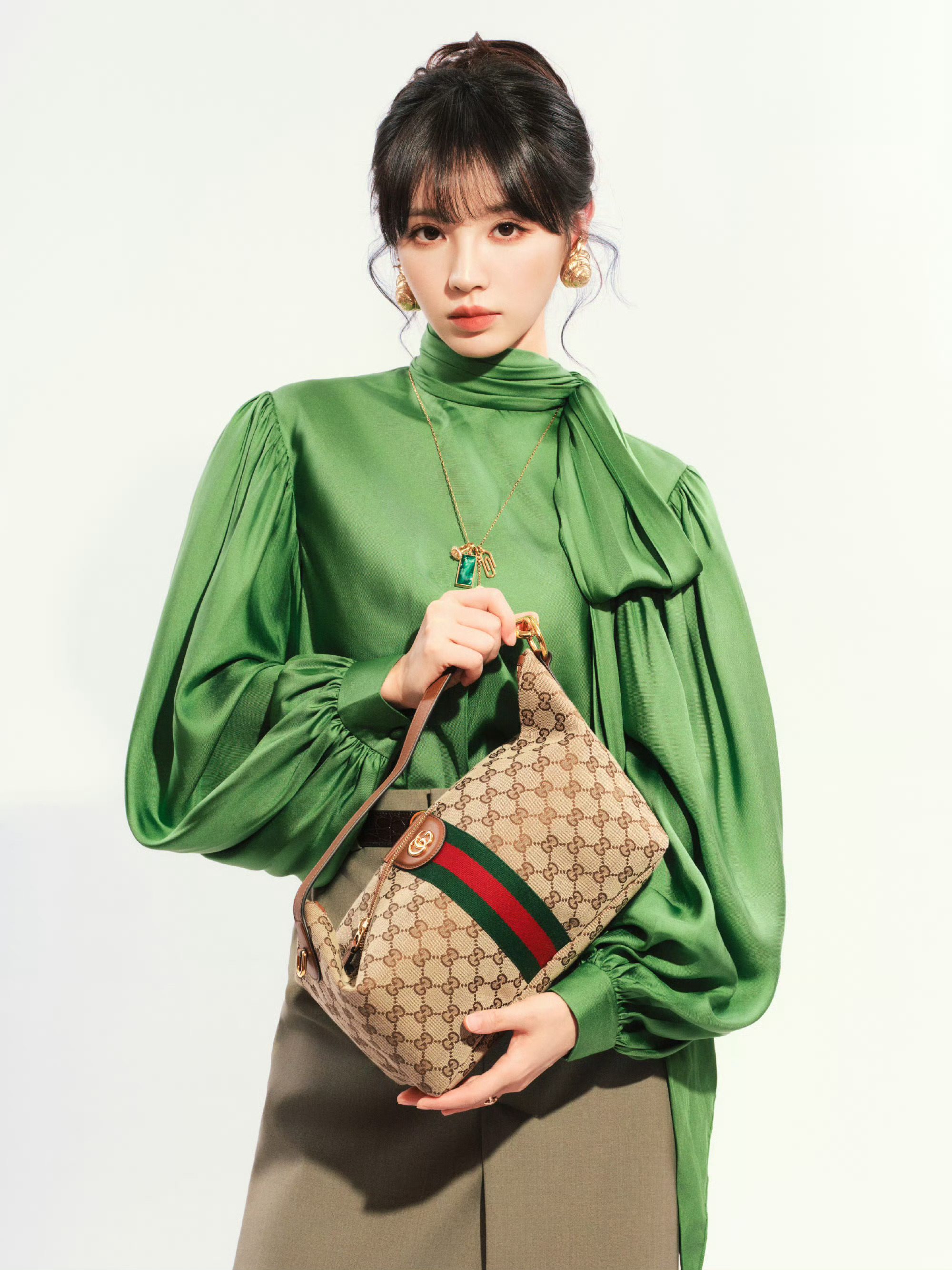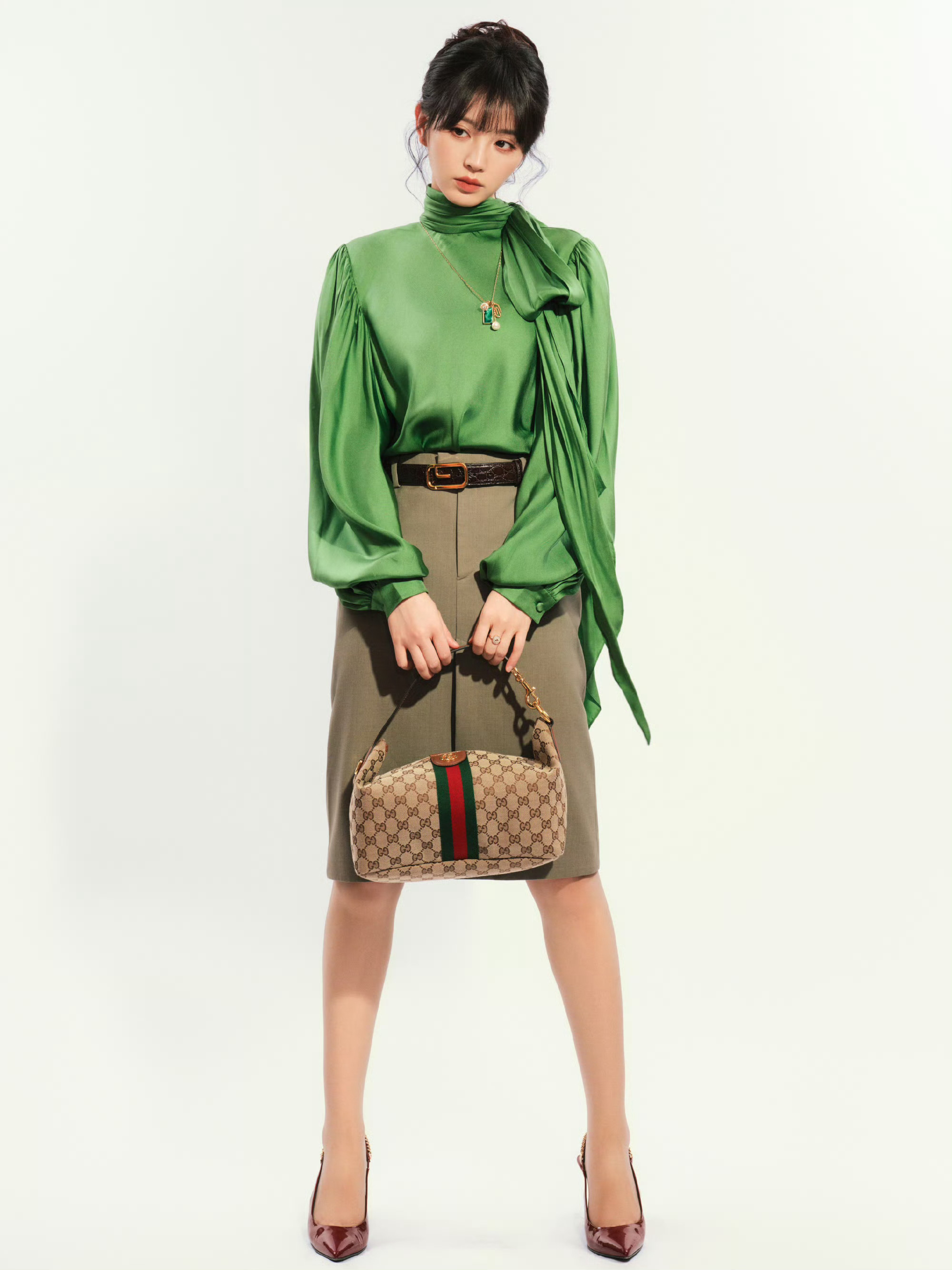 田曦薇身着古驰2026早春系列,携全新GucciVanity系列包袋优雅亮相上海恒隆广场HOME TO LUXURY盛装派对
