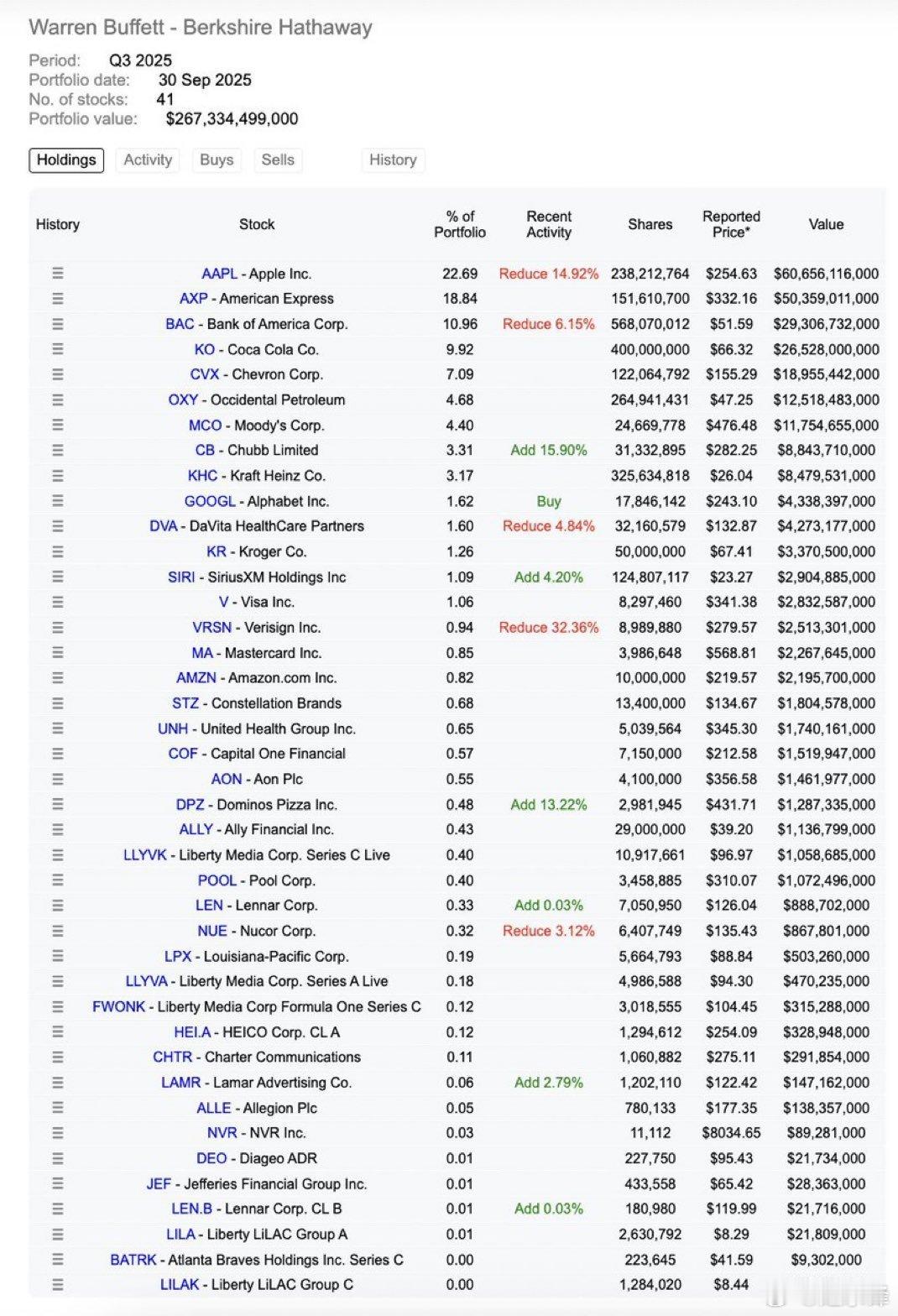 巴菲特退休前最后一次打孔,看伯克希尔哈撒韦披露13F文件,三季度建仓谷歌43亿美