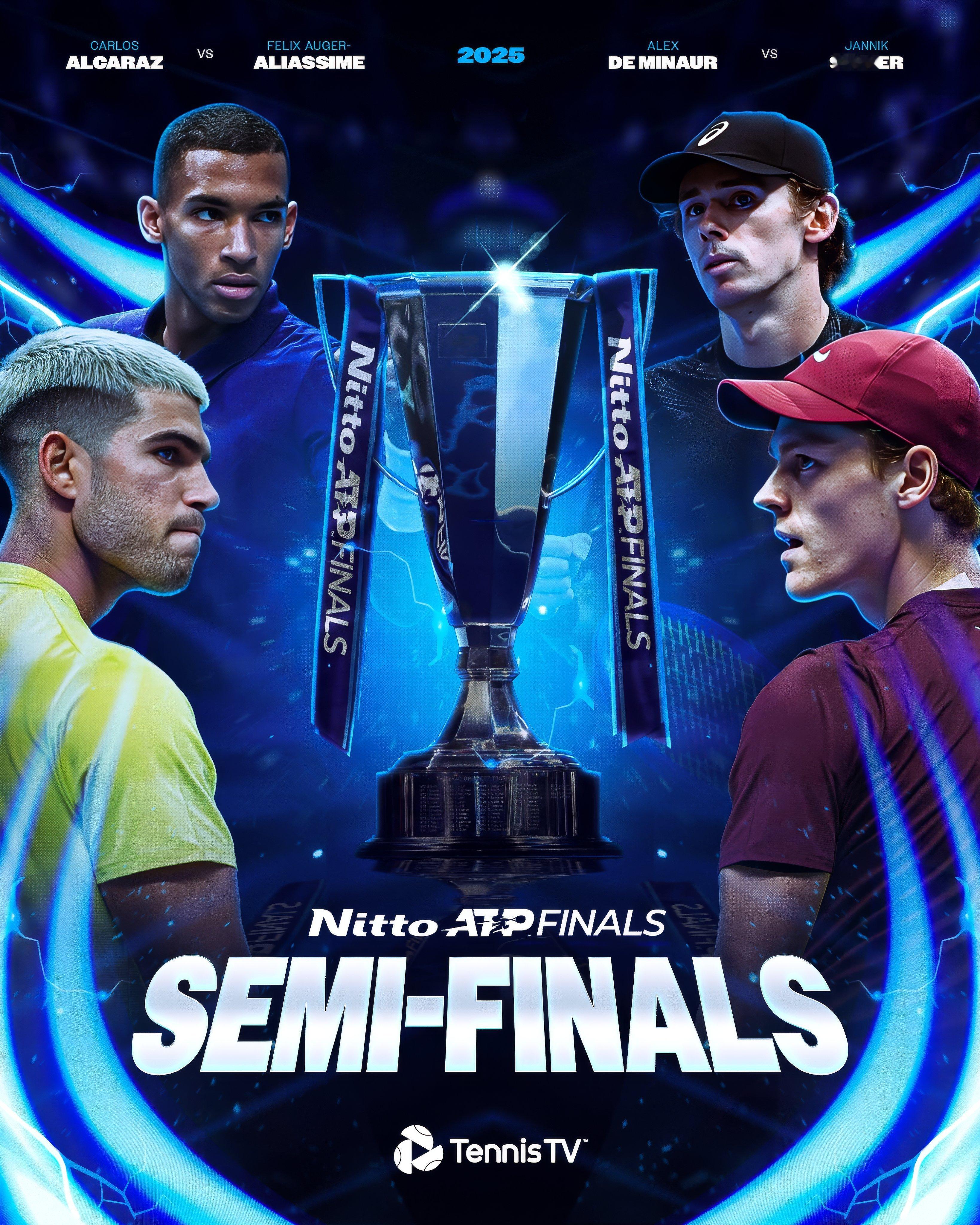 阿利亚西姆6-4、7-6击败兹维列夫,首进总决赛四强。半决赛对阵:阿尔卡拉斯vs
