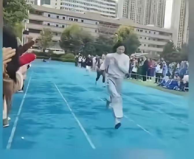 真是有人的地方就会有是是非非! 一位美女老师穿衣服白色运动衣裤在跑比赛,她的跑步的姿势竟然引发大家讨论! 女老师跑步确实有些扭捏,手臂好像在有意地挡着胸部,这还不算还有夹腿的动作,但看比赛结果,她竟然第一名! 她为啥要手臂护胸? 是不是胸部晃悠,也许她是宝妈,正直哺乳期间,运动量过大,大幅度跑动,会很不舒服,晃悠的厉害,甚至因为大幅震动会感到疼痛! 如果不是宝妈,也许是女老师太过于丰满,担心学生看到胸部晃来晃去,上窜下跳的很尴尬,所以有意用手臂遮挡一下! 至于老师夹腿跑,主要原因不在腿部,根源在于她的手臂,不敢大胆摆臂,直接影响到迈不开腿! 即便是这样的扭捏跑,女老师照样跑在最前面,由此可见女老师当年竞赛跑的功底不一般! 女老师除了能跑,还有一个主要的标志,她很漂亮,虽然拍摄画面不是十分清晰,到不影响女老师的可爱与美丽! 老师,加油,下次跑比赛要记住了一定放开手臂和双腿,放开跑,一定很更快更美!