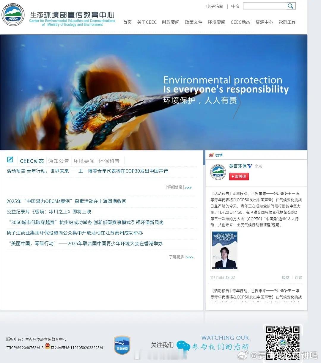 环境部宣传中心官网一打开就是咱们COP30中国角形象大使王一博!