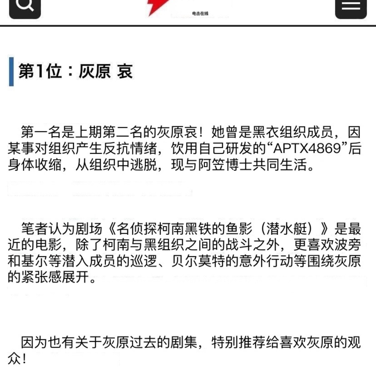 柯南人气角色投票灰原哀第一名毛利兰第二名引发热议介绍文被指wpg灰原哀