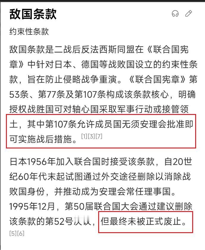 薛剑领事没被日本右翼吓到,再次发声,比上一次更猛! 这一次,薛剑特意社媒上,提到联合国宪章中的一个“关于旧敌国的条款”,并称根据该条款,高市早苗这些政客的行为简直是愚不可及。 这下小日本们坐不住了,原来旧敌国条款只是建议删除,并没有正式删除,难怪西方一些国家要求废除五常的一票否决权,中国要是没有一票否决权,该条款还真有可能被删除。 我们应该向本子提出遵循波茨坦公告到名古屋驻军,这个公告如今仍然有效。不要忘了中国和美国一样是有合法驻军权的,只是当时老蒋忙于内战,没有派兵去。 既然有法可依,师出有名,那执法必须严格!唯如此方能让千千万万死难同胞的冤仇得以伸报!