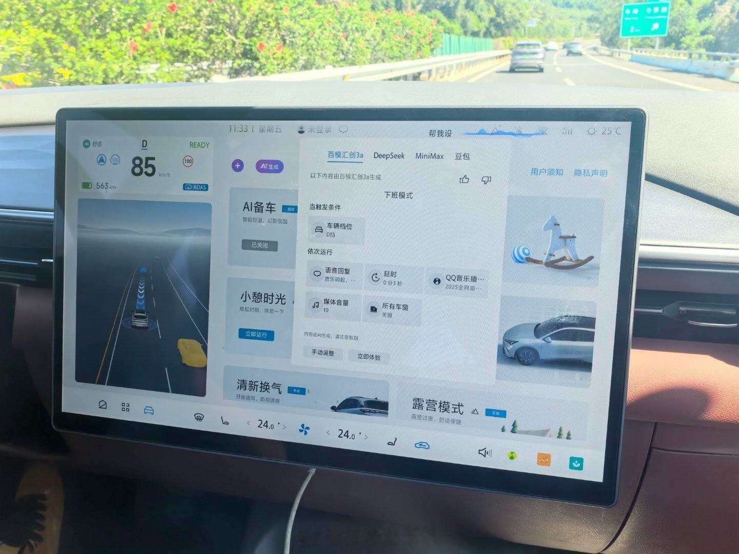 昨天试驾极狐全新阿尔法T5,顺路通过一段86.5km接近2小时的路程记录了一下电耗,在室外气温25度,车辆坐3人,包括空调、座椅按摩等其余全都正常使用的情况下,实测电耗是13.9kwh/100km!无意中发现,这个12万级别的纯电SUV搭载有包括Deepseek、豆包等多个大模型,并且可以进行AI语音进行情景模式的自动化生成,很有意思Ps:界面再设计得好看一些就体验会更好!