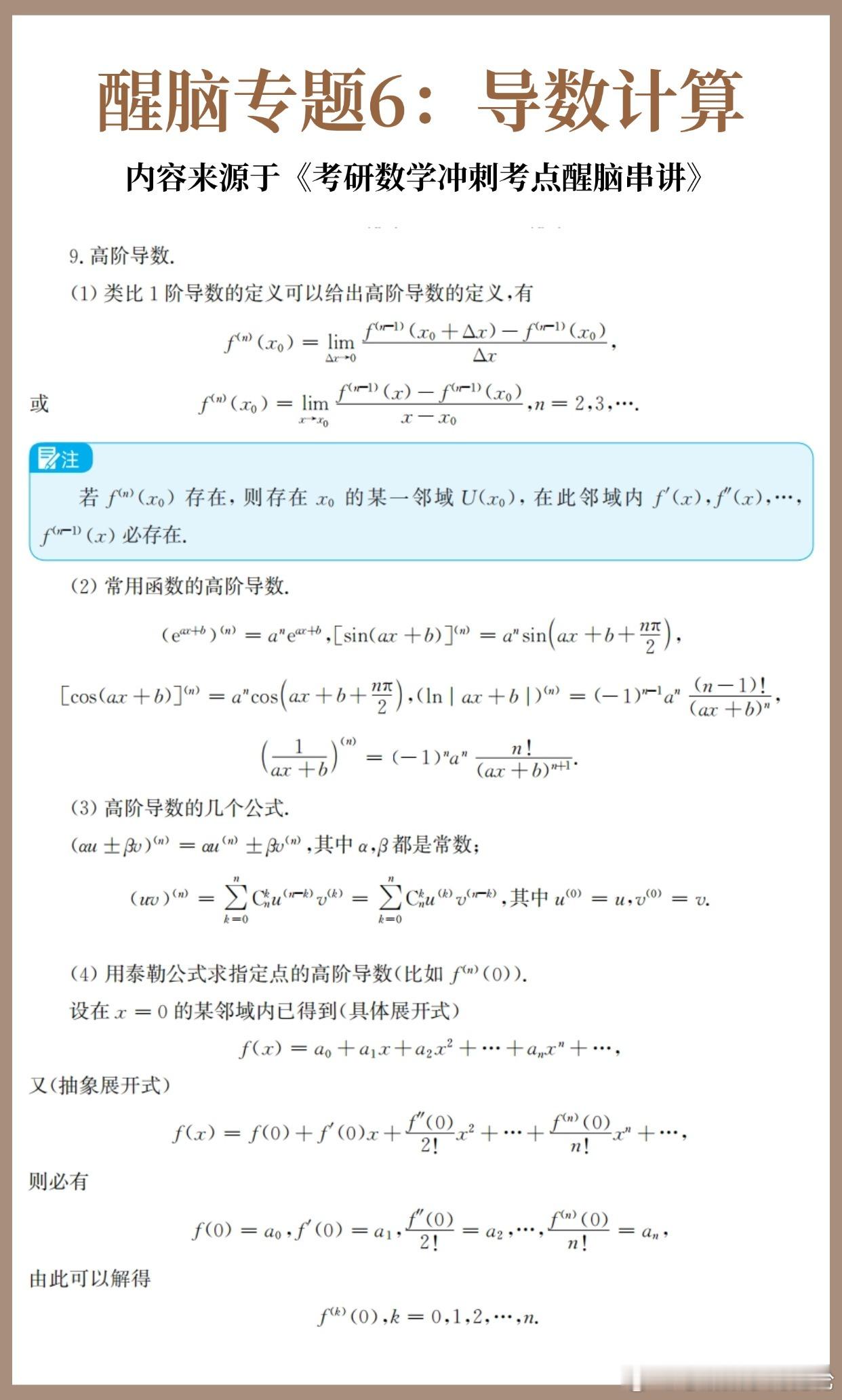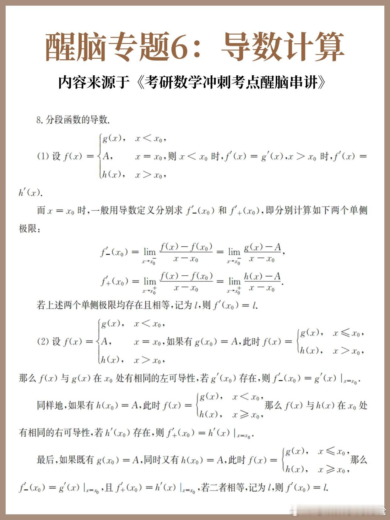 考研数学30天急救计划!【醒脑专题6】:导数计算30天30个核心专题,把数学重要的公式和考法总结回顾一遍!每天背一背,写一写,不负过往,终将上岸!