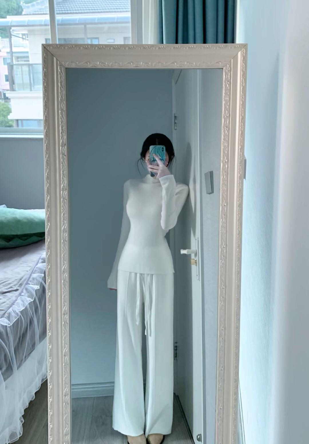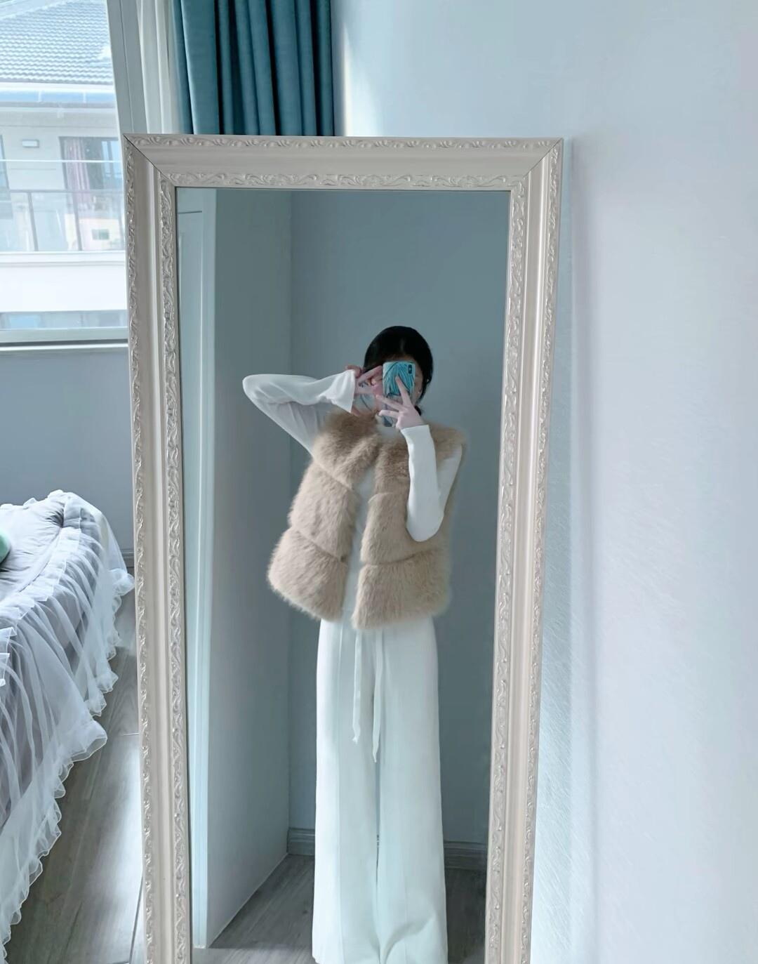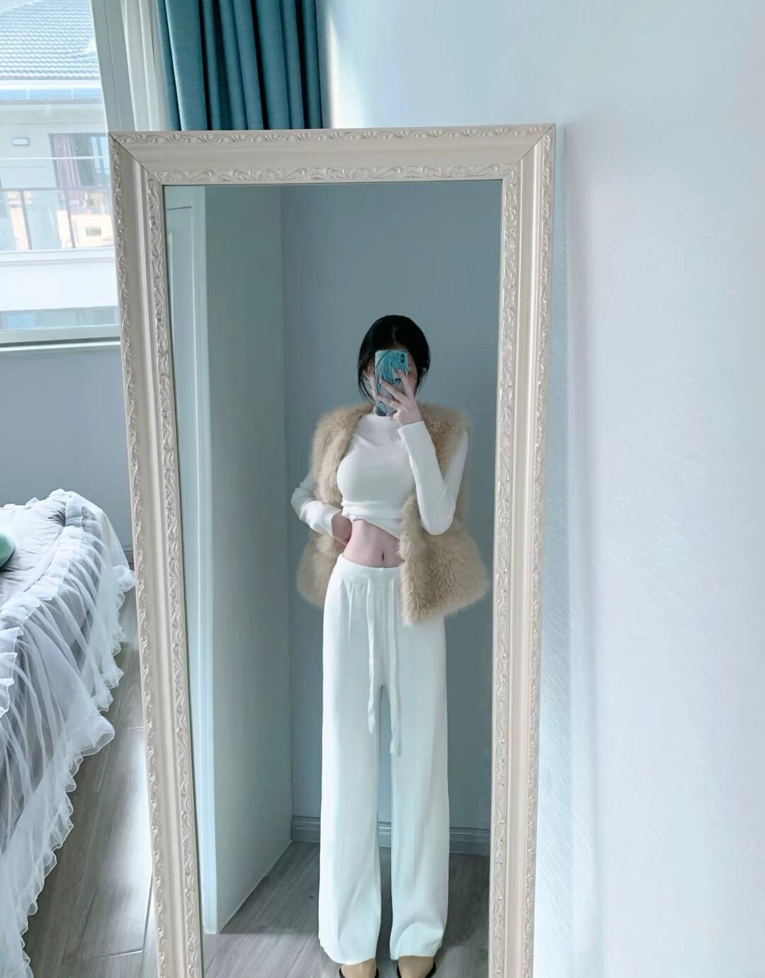 白色毛衣+毛绒背心+宽松长裤,清新自然,尽显优雅气质!