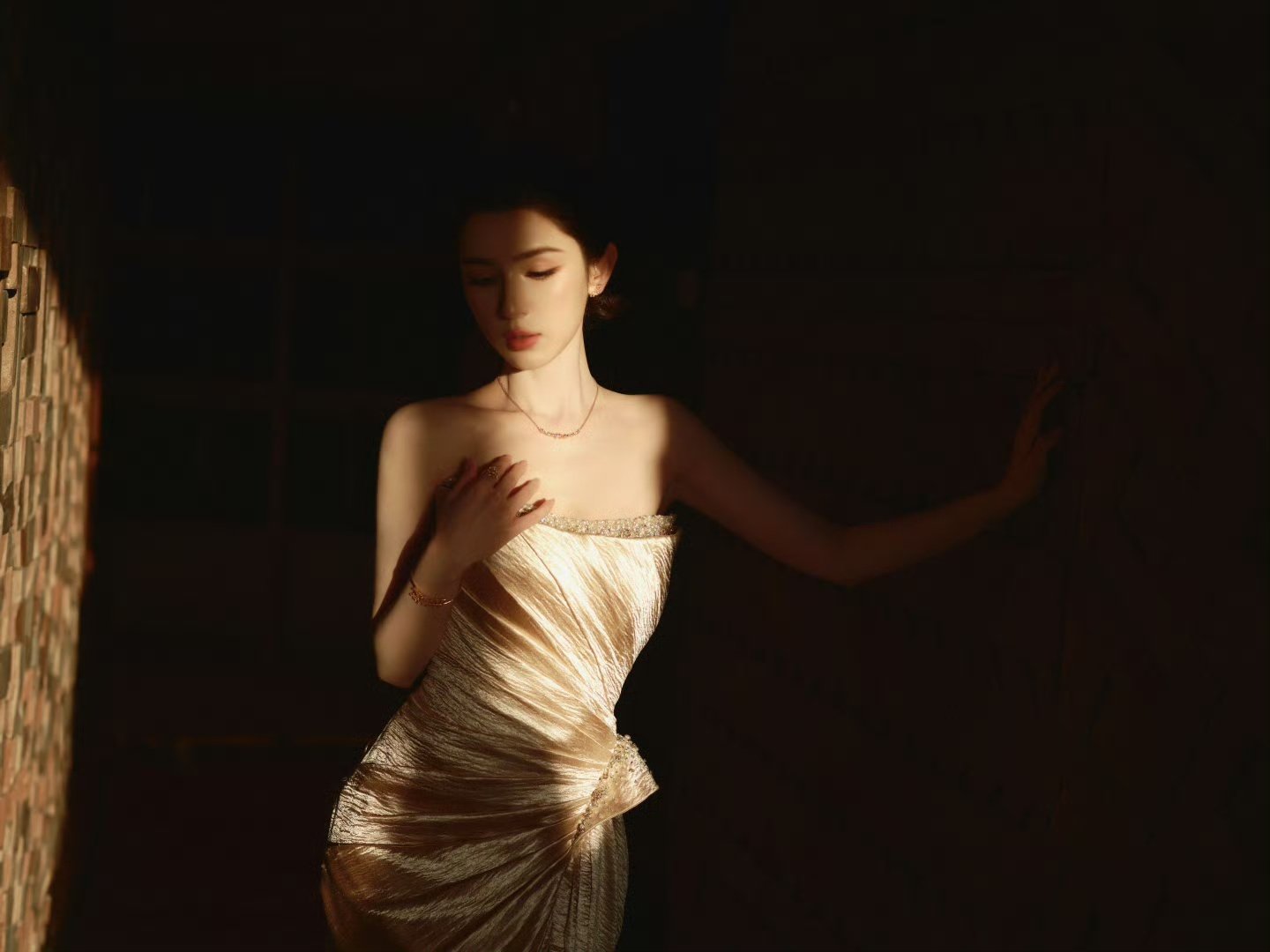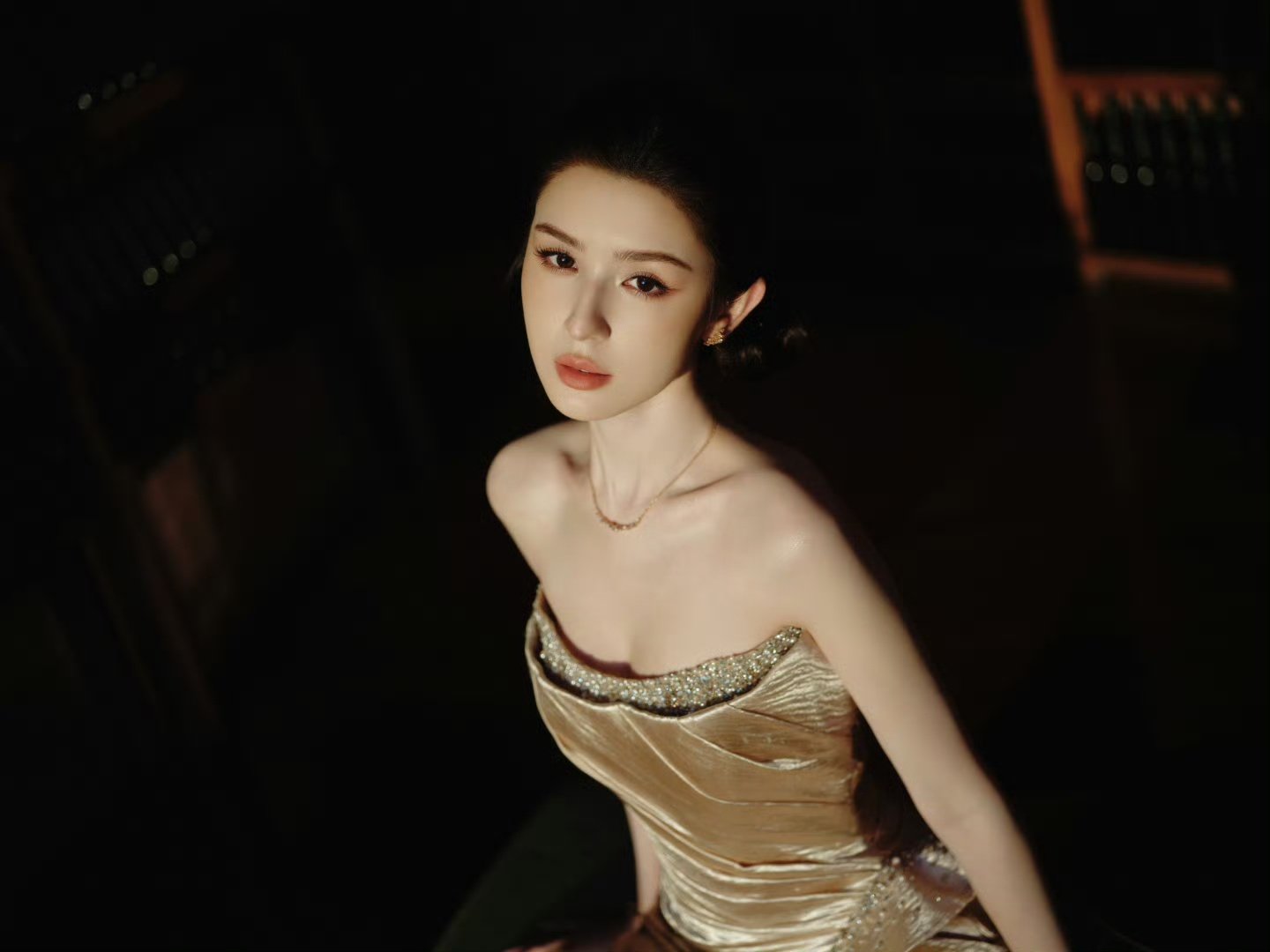 裙摆鎏金生辉,解锁暗夜中的秘密。星光闪耀,哈妮好美!