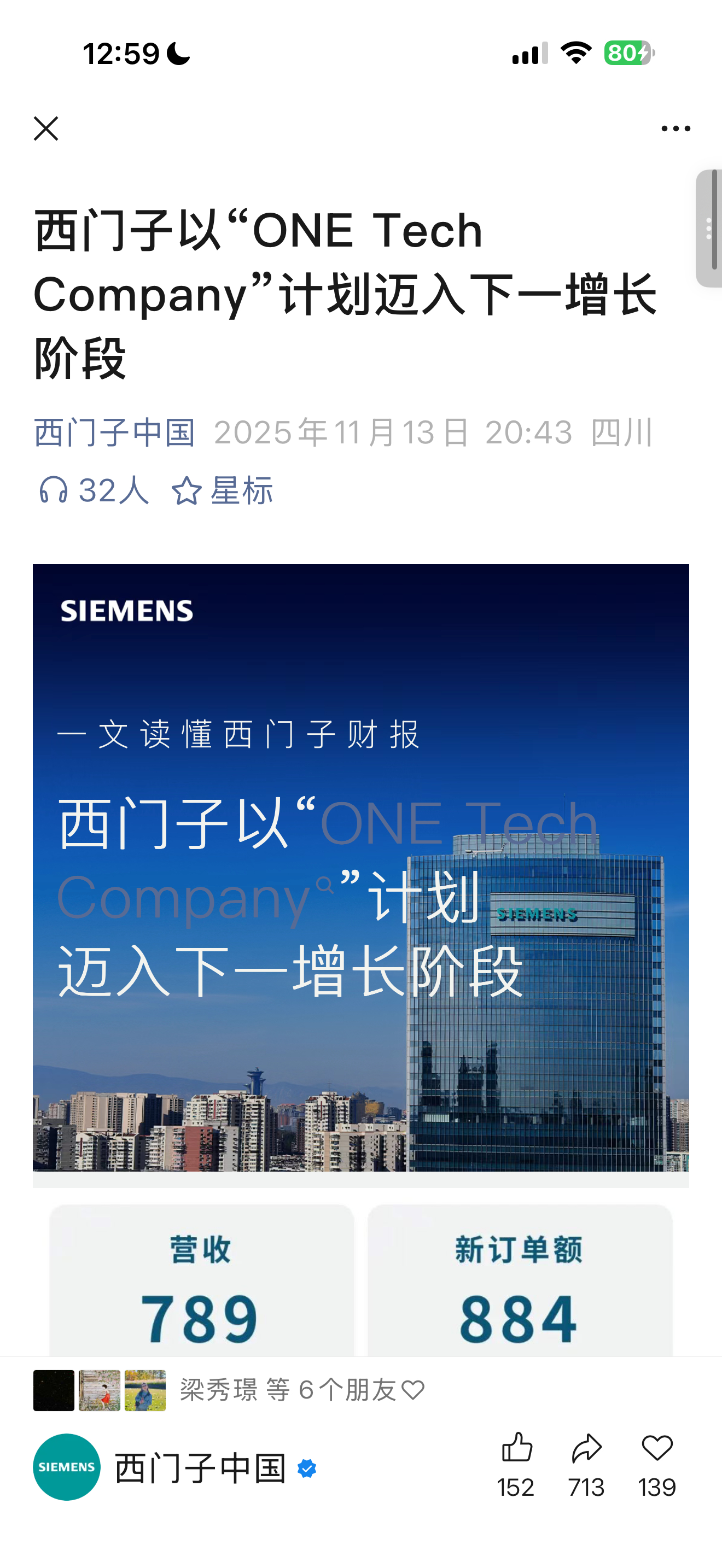 西门子发布财年报告,发布了对未来的预测,2026 财年营收将在可比基础上增长 6% 至 8%,订单出货比将超过 1 。对于区域市场,美国、中国和印度是公司重点关注的战略市场。未来五年,西门子在这三个区域市场的可参与市场总额年复合增长率预计分别为:美国约 6%、中国近 4%、印度超 7%(不含西门子医疗)。