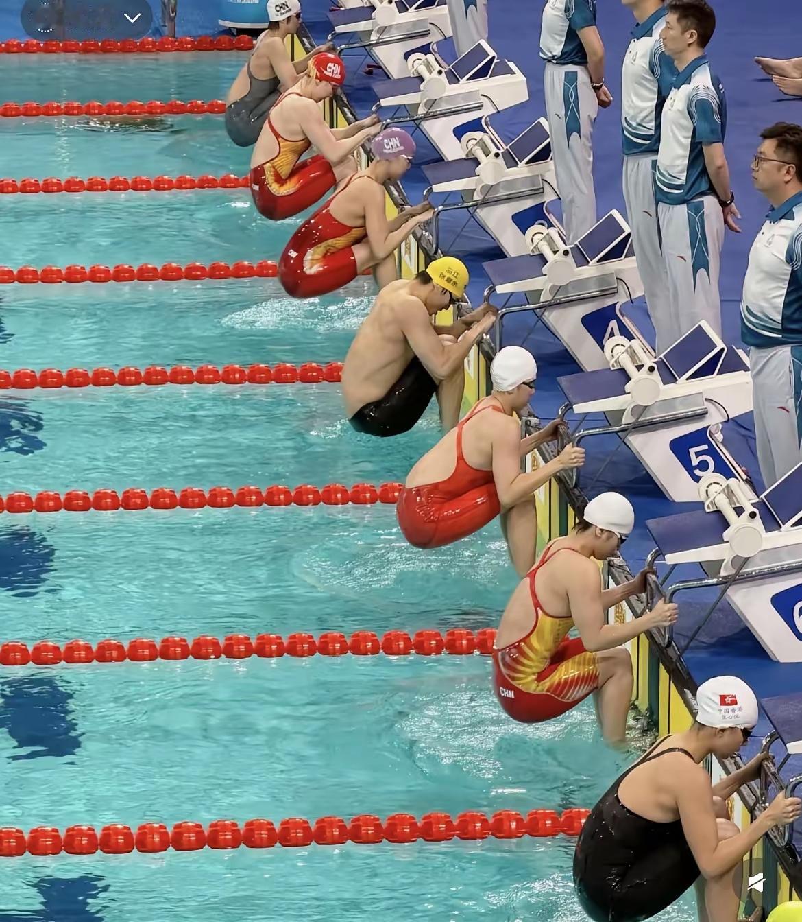 看到这张图我愣了一下,徐嘉余为什么不穿泳衣?仔细一看,他怎么跑进女仰的泳池了? 突然想到,这好像游的是混合接力吧,其他队的都是女仰。 曾经都说浙队不按正常顺序,结果这次只有浙队按正常顺序。话说,你们有没有觉得徐嘉余有点像杜德伟? 网友纷纷表示: 正式比赛比如奥运会的混合泳接力是男子和女子分开两个小项,没有男女混合泳的! 男仰徐嘉余断崖领先,别的队本质上就是放弃争冠,大家争第二了。 侧面说明中国男子仰泳的困顿,水平低下,人才青黄不接啊!