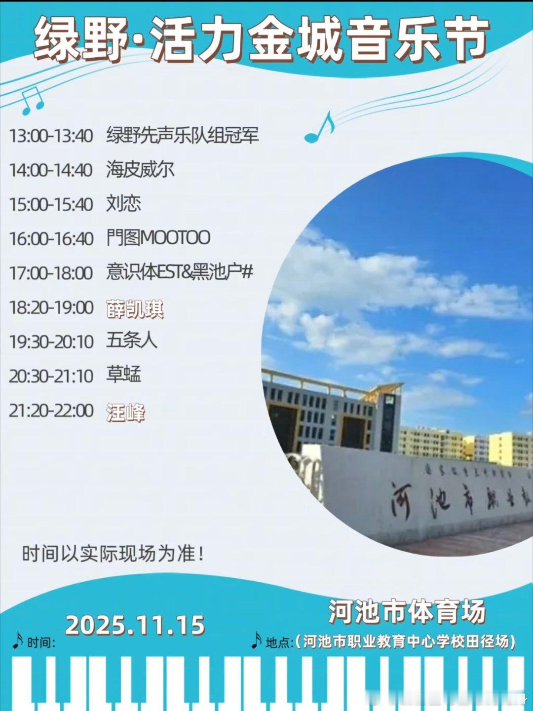 📍广西河池 11月15日 13:00 河池市体育场【河池市职业教育中心学校田径场】金城江,一座被山水和文化浸润的城市! 就在今天✨热血开唱