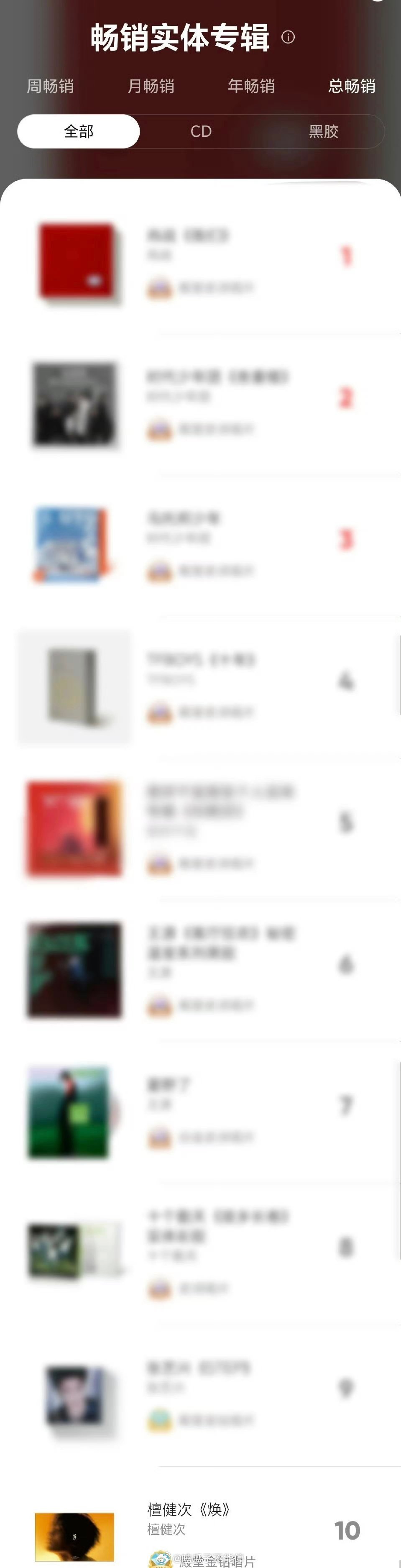 檀健次二专实体《焕》来到年榜第三,总榜第十了!
