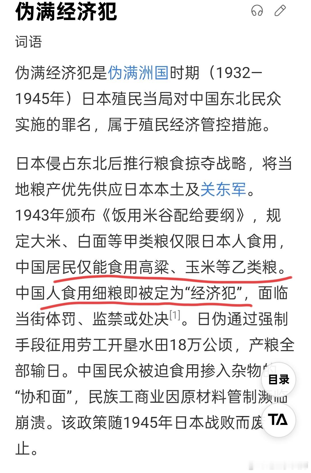 逆天,伪满洲国时期咱一个月吃一顿肉?伪满经济犯了解一下。“规定大米、白面等甲类粮仅限日本人食用,中国居民仅能食用高粱、玉米等乙类粮。中国人食用细粮即被定为“经济犯”,面临当街体罚、监禁或处决。日伪通过强制手段征用劳工开垦水田18万公顷,产粮全部输日。中国民众被迫食用掺入杂物的“协和面”,民族工商业因原材料管制濒临崩溃。该政策随1945年日本战败而废止。”