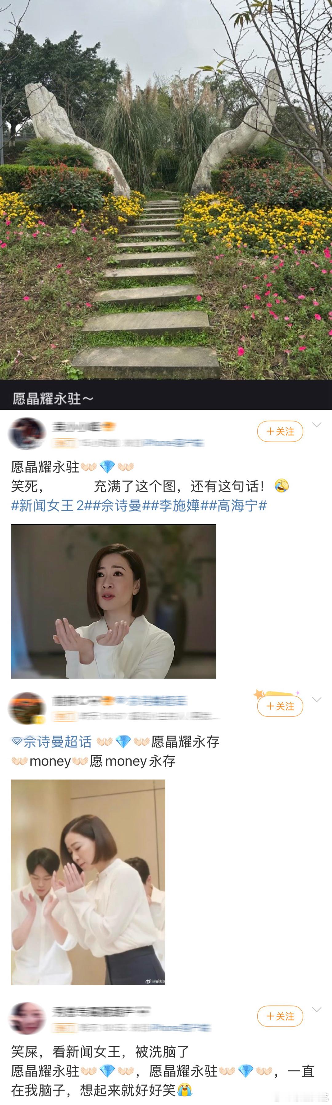 这句口号真的自带洗脑buff,文慧心为查诈骗以身入局,面对晶耀学院诡异的祷告仪式,硬着头皮模仿双手捧心高呼的样子又真实又好笑,剧外彻底火出圈,剧粉用它接头,许愿