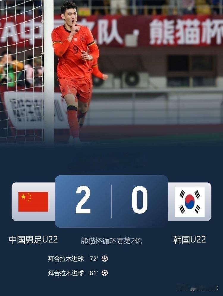 11月15日足球消息,U22国足2-0韩国U22,说说个人对本场比赛的4点看法。 1、拜合拉木今天简直就是哈兰德附体,长驱直入,后跟写意,梅开二度。别我跟说韩国二队三队,披着队服就是韩国队。 2、这场比赛真的让我们看到了希望,还是那句话,赶紧把有潜力的年轻球员往欧洲输送,只要能有5-6名能在五大联赛的第二级别联赛或者欧洲二流联赛打上主力,中国冲击世界杯应该有很大可能! 3、国足胜在心态比上一次好多了,加上拜合拉木状态爆棚!但也有问题,左边翼卫汪士钦防守进攻都有问题,希望让胡打他位置,杨希打右边翼卫;左中卫贺一然也是不稳,没有合适左脚中卫;中场也是问题点,球过中场倒不了两脚,希望王博豪下一场打后腰试试。 4、事实证明踏踏实实532,敢拼敢抢,防守反击就是目前这支U22最适合最舒服的打法。我希望今后不管你是面对韩日还是越南泰国,都要把身段放低,场面难看不丢人,输了才膈应人。