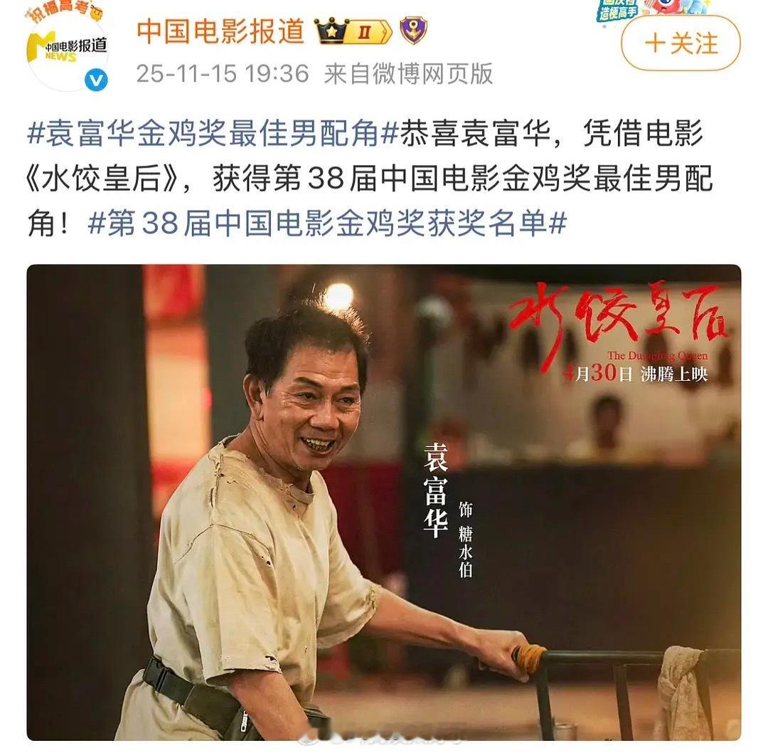 金鸡颁奖:最佳男配袁富华,最佳女配钟楚曦。之前有传闻说最佳男女主是易烊千玺和段奥娟。