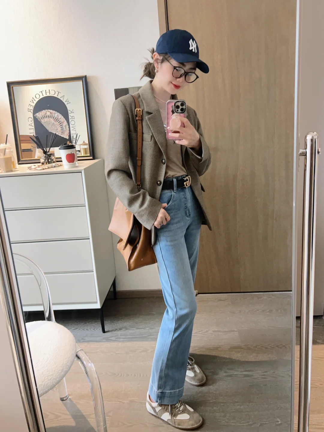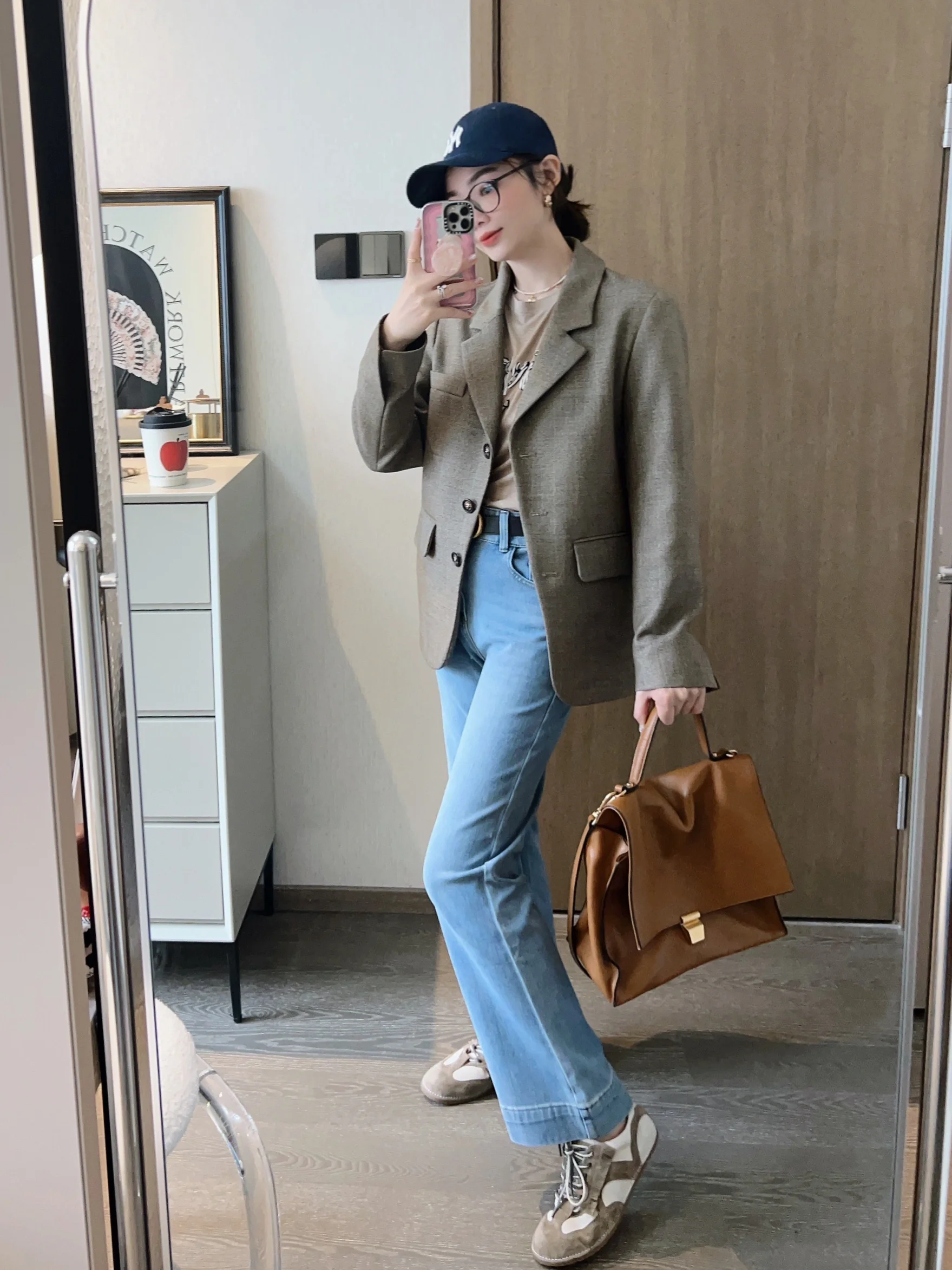 今年超爱的西装牛仔裤套餐又来啦 配上球鞋上班穿真的是打工人舒适天花板~ 👟🧥 现在我可以开心的大声宣布:我们大南京人民已经全部集体入春啦~🌸👒🌳 不再臃肿的感觉太美好了~ 多希望天气可以永远停留在二十度呀~~