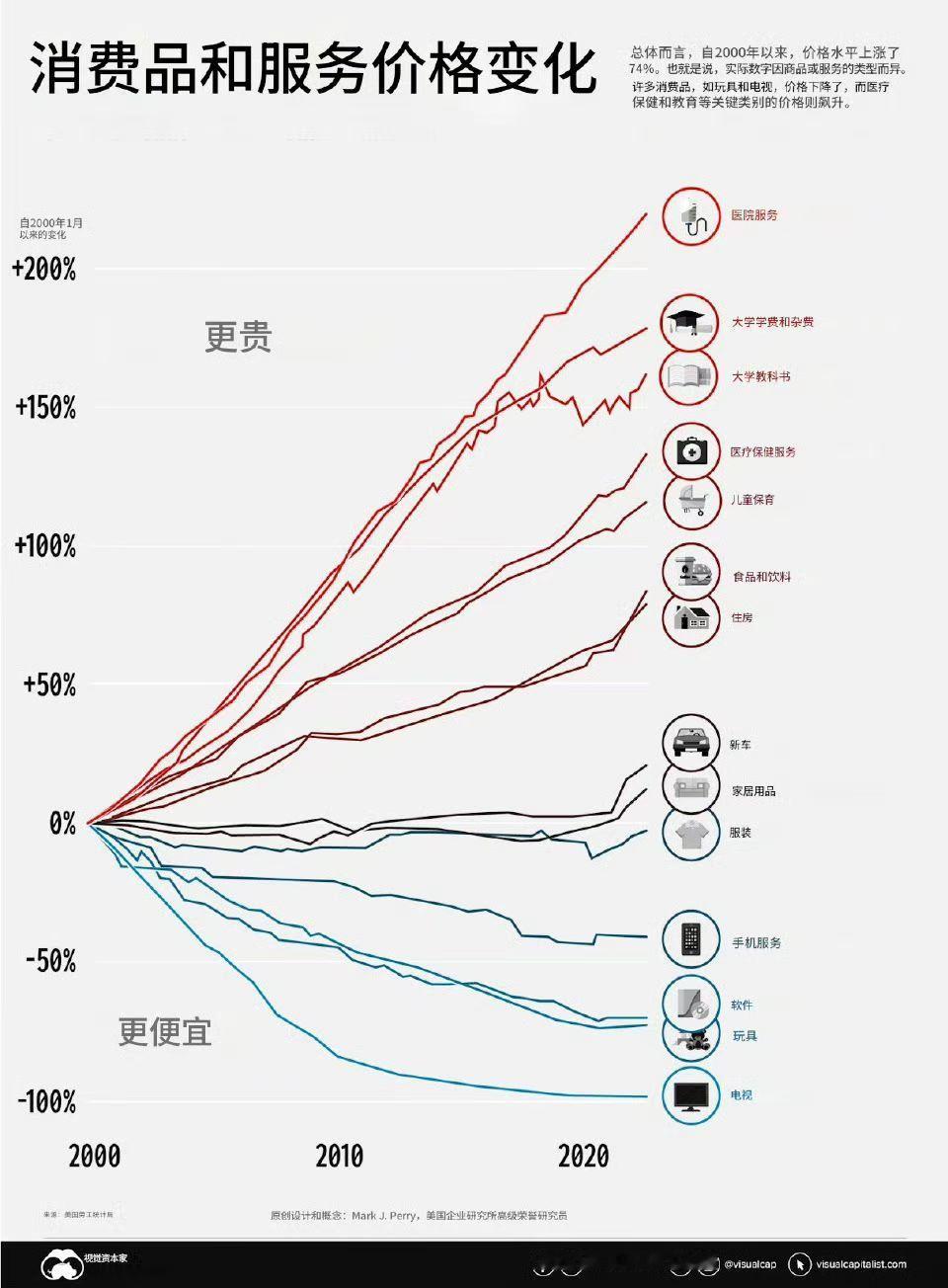 2000-2025年,美国劳工统计局统计的美国物价的变化。