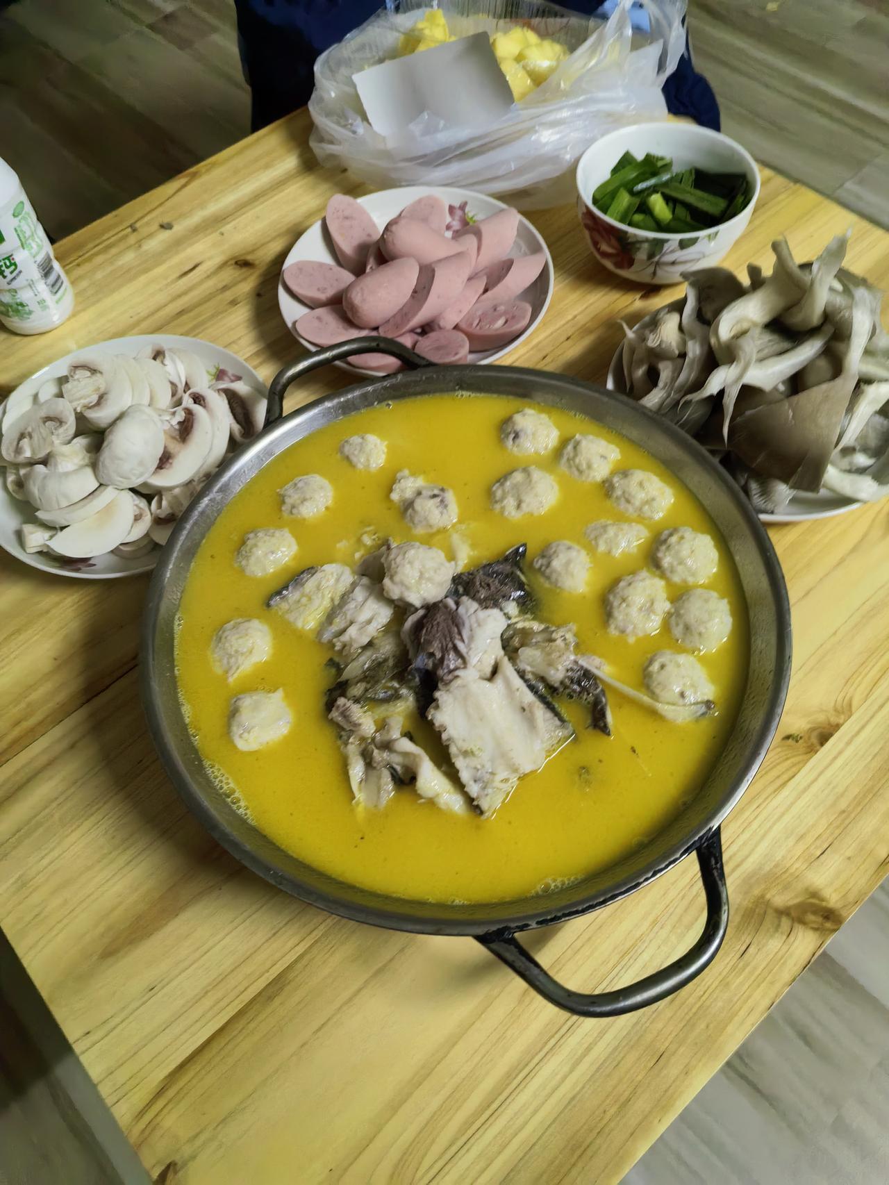 晚餐家常菜分享厨师休息日的晚餐暴击!胖头鱼火锅+蒜蓉肉肠,暖到骨子里的家常味 作为天天围着餐厅灶台转的厨师,休息日最奢侈的事,莫过于给自己露一手——不追求摆盘精致,不纠结技法复杂,只做最对胃口的家常菜,今天这桌胖头鱼火锅+蒜蓉肉肠,直接把幸福感拉满! 先说主角胖头鱼火锅,这可是秋冬暖胃神器。早上特意去菜场挑了条3斤多的鲜活胖头鱼,鱼头肥美、鱼肉鲜嫩,处理干净后用姜片+料酒腌10分钟去腥味。锅底不用复杂,清鸡汤打底,扔几片白芷、葱段提香,大火烧开后先下鱼头慢炖20分钟,汤炖得奶白浓稠,隔着锅都能闻到鲜味儿! 煮到鱼头软烂,先盛一碗汤喝,鲜得掉眉毛,暖乎乎的顺着喉咙滑下去,浑身都舒展开了。再下切好的鱼肉片,薄厚均匀,涮30秒就熟,蘸上自己调的麻酱+沙茶+小米辣,肉质细嫩无刺,一口下去鲜辣过瘾。最后扔一把青菜、豆腐吸满汤汁,连汤带菜吃,暖心又暖胃。 搭配的蒜蓉肉肠,是点睛之笔!选的肉肠肥瘦相间,切成斜片,热锅放少许油,下蒜末、小米辣爆香,倒入肉肠翻炒至表面微焦,淋一勺生抽提鲜,撒把葱花就出锅。蒜香裹着肉肠的油脂香,外焦里嫩,咸香入味,配火锅解腻,单吃当下酒菜也绝了! 厨师的休息日,不用应付复杂的菜单,不用在意食客的口味,只做自己爱吃的菜。一碗鲜掉魂的鱼火锅,一盘香到舔盘的蒜蓉肉肠,没有山珍海味,却藏着最踏实的幸福。生活不过如此,吃饱喝暖,便是心安~