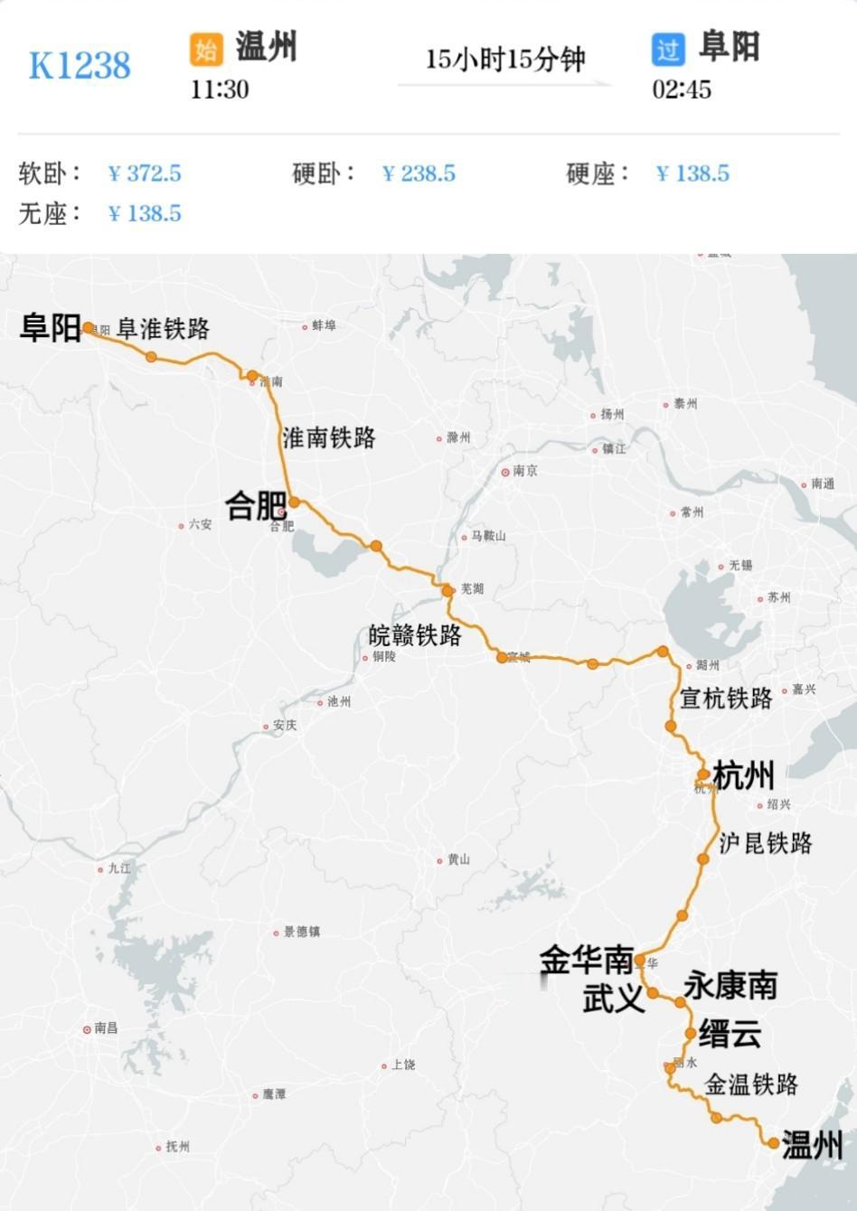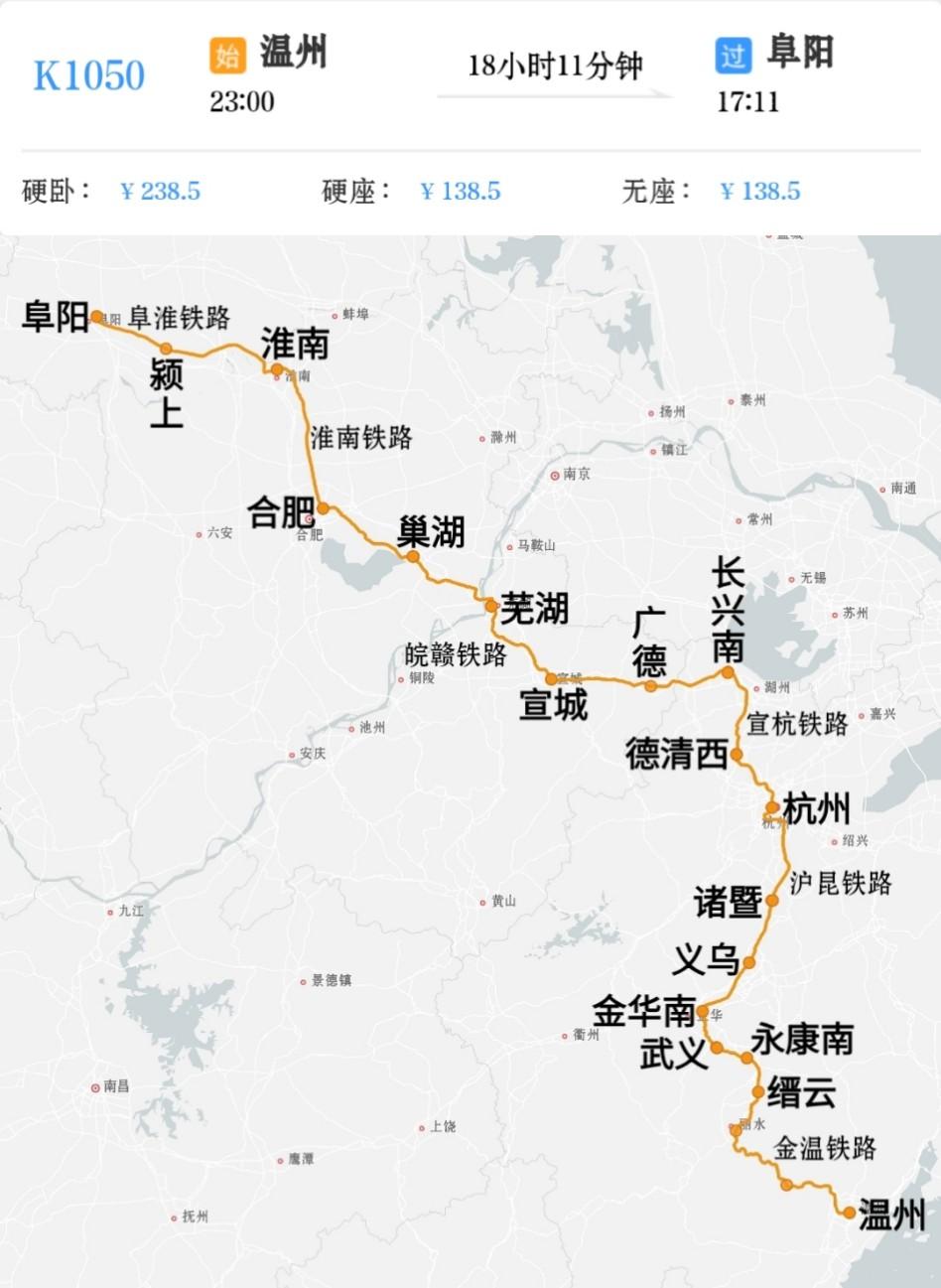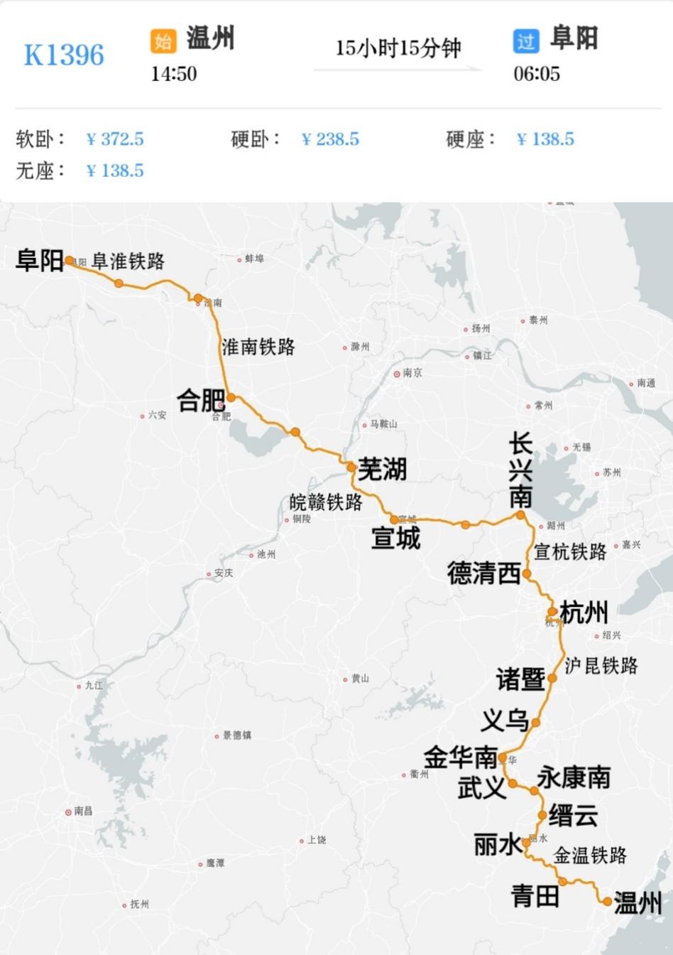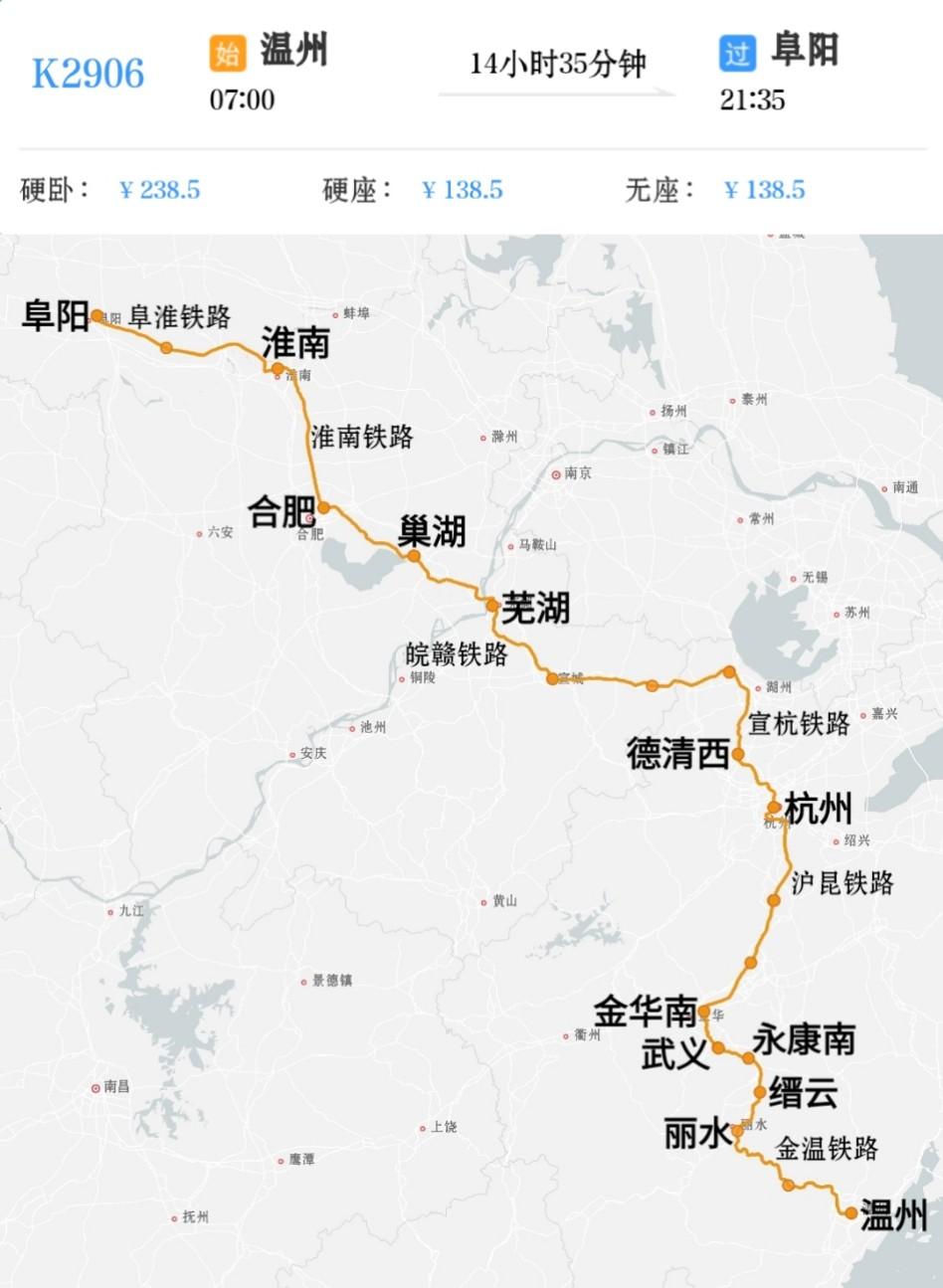 温州到阜阳4趟绿皮火车 温州到阜阳K2906次 温州到阜阳K1238次 温州到阜阳K1396次 温州到阜阳K1050次