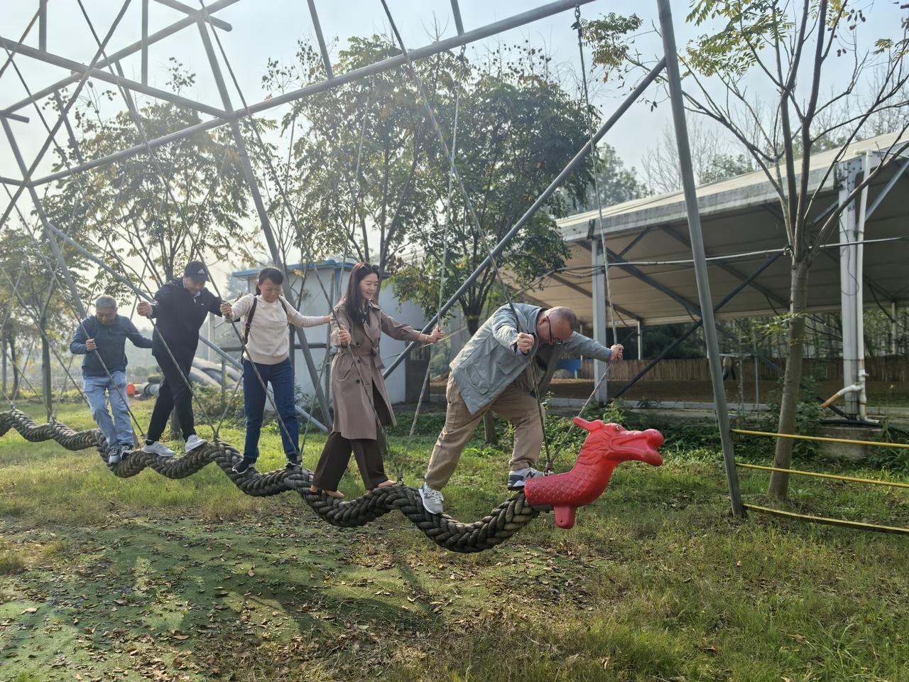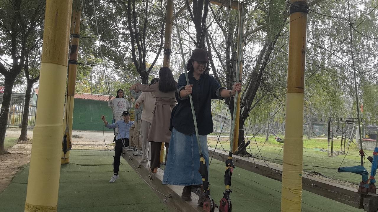 抓住秋天最后的衣角,参与单位工会组织的秋游活动,和两个月未见的老同事们一起郊游,出去走走啦。 此次去的目的地是襄阳古隆中脚下的一个团建园。园区挺大的,各项娱乐设施齐全、花草植被挺多,周围都是庄稼地以及菜地,所以空气极为新鲜,阳光也格外明媚。在这样大的场地,大家相约来玩游戏,拔河、颠球、唱歌、跳舞,年轻人还组织玩起了“狼人杀”,其他人跑到院子里玩起了小朋友们的游戏,骑大马、蹦床、多人荡平衡木秋千……一时间让这个园区充满了笑声。 大家忘了年龄,忘了工作的压力,平时,大家都忙着工作,难得有机会几个班组的一百多名职工能坐下来面对面好好聊会天,享受生活之美,最后再团团圆圆吃上一顿农家饭。这样的文明出行方式,堪称解忧杂货店,让大家好好放松,张弛有度。 感谢段工会春、秋两季挑日子挑天气挑时间带职工走进大自然,让大家尽情享受工会好福利。友友们,你们单位也有这样的福利待遇吗?