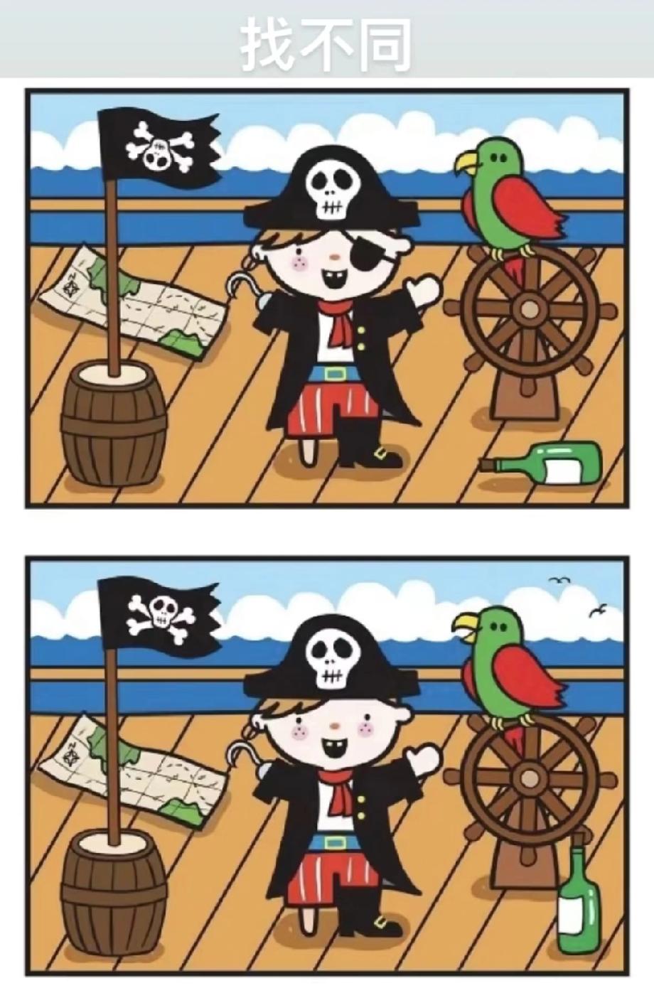 救命!这张海盗找不同我和我弟吵起来了!他说有3处不同,我只看到2处,到底谁对?