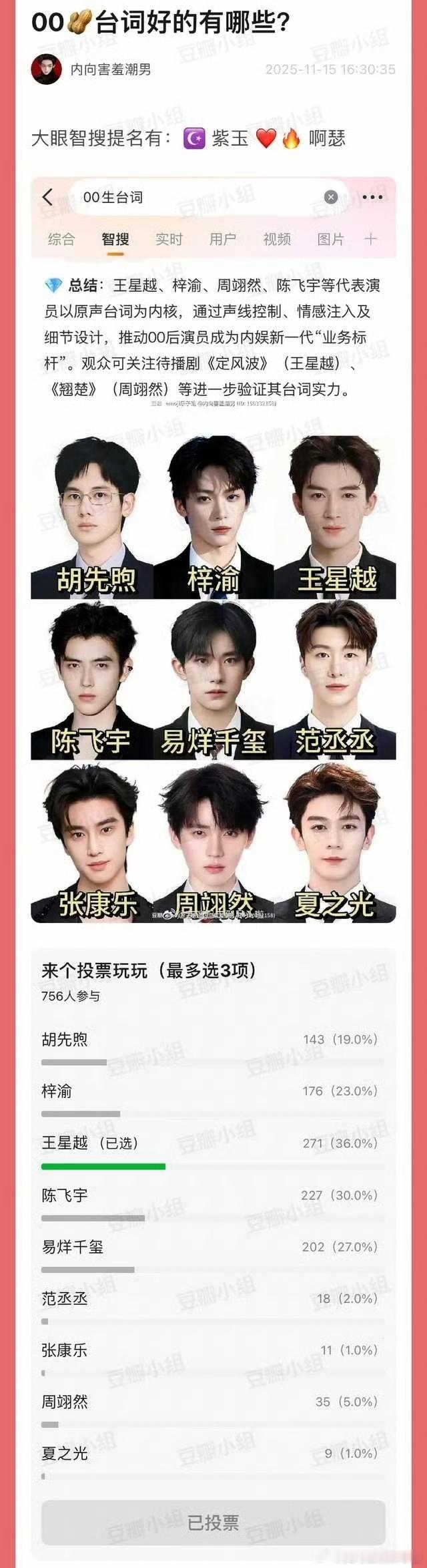 700+网友票选台词功底好的00生,你认同吗?胡先煦梓渝王星越陈飞宇易烊