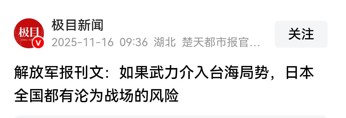 解放军报:日本若武力介入台海,全国都有沦为战场的风险 在解放军报最新一期的内容中,刊发了专门文章《叫嚣武力介入台海局势只会把日本引向不归歧途》!在文章中,作者提到了日本如果真的敢用武力介入台海局势的话,那么日本全国都有会沦为战场的风险。 这绝非危言耸听,日本国内目前正在积极地进行军费提高和军力外扩。在此基础上,北到北海道,南到冲绳,有至少数十个民用的机场和港口已经被日本改造成了所谓的军民两用。并且在10月份的军事演习中,日本自卫队动用了39个机场和港口进行战机的起降和军事方面的运输。 也就是说,一旦发生战争,日本国内的这些所谓的民用设施实际上都可以转变为军用。而随着性质的转变,这些设施也必然会成为解放军火力打击的目标。 解放军报明确的把这件事情说出来,一方面是告诉日本的那些极右派的政客,他们的小心思我们早就已经知道了。另外一方面也是提醒日本民众,一些日本的高层已经把他们绑定在自我毁灭的战车上了。