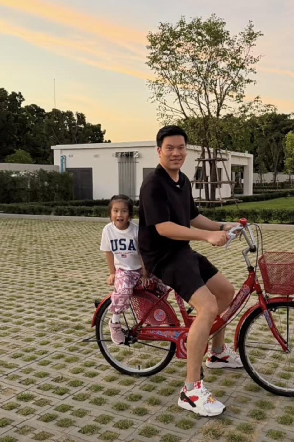 周末亲子时光:佩通坦的一双儿女长高了,也长大了不少。一家四口一起游玩,佩通坦领着女儿,皮塔卡用自行车带着儿子,休闲又亲情满满! 看他们着装,T恤,短裤,真是夏日时光啊。特意查了一下今天泰国曼谷温度,最高气温达33度呢。地区差异,我们这边过初冬天气,人家那里就是夏天嘛。 佩通坦一家四口,和谐又温馨。姐弟俩一起玩耍,小弟弟天真无邪,爱吃烧烤没商量。在爱的氛围下长大的孩子多幸福! 佩通坦粉色体恤,少女感满满,家庭生活甜蜜蜜啊!