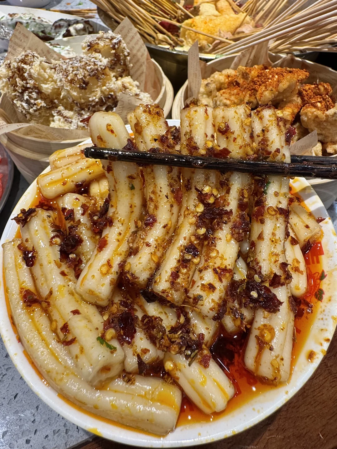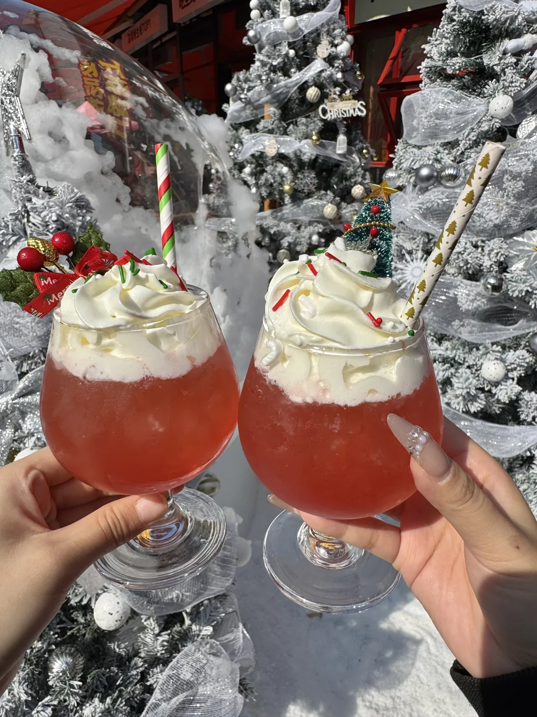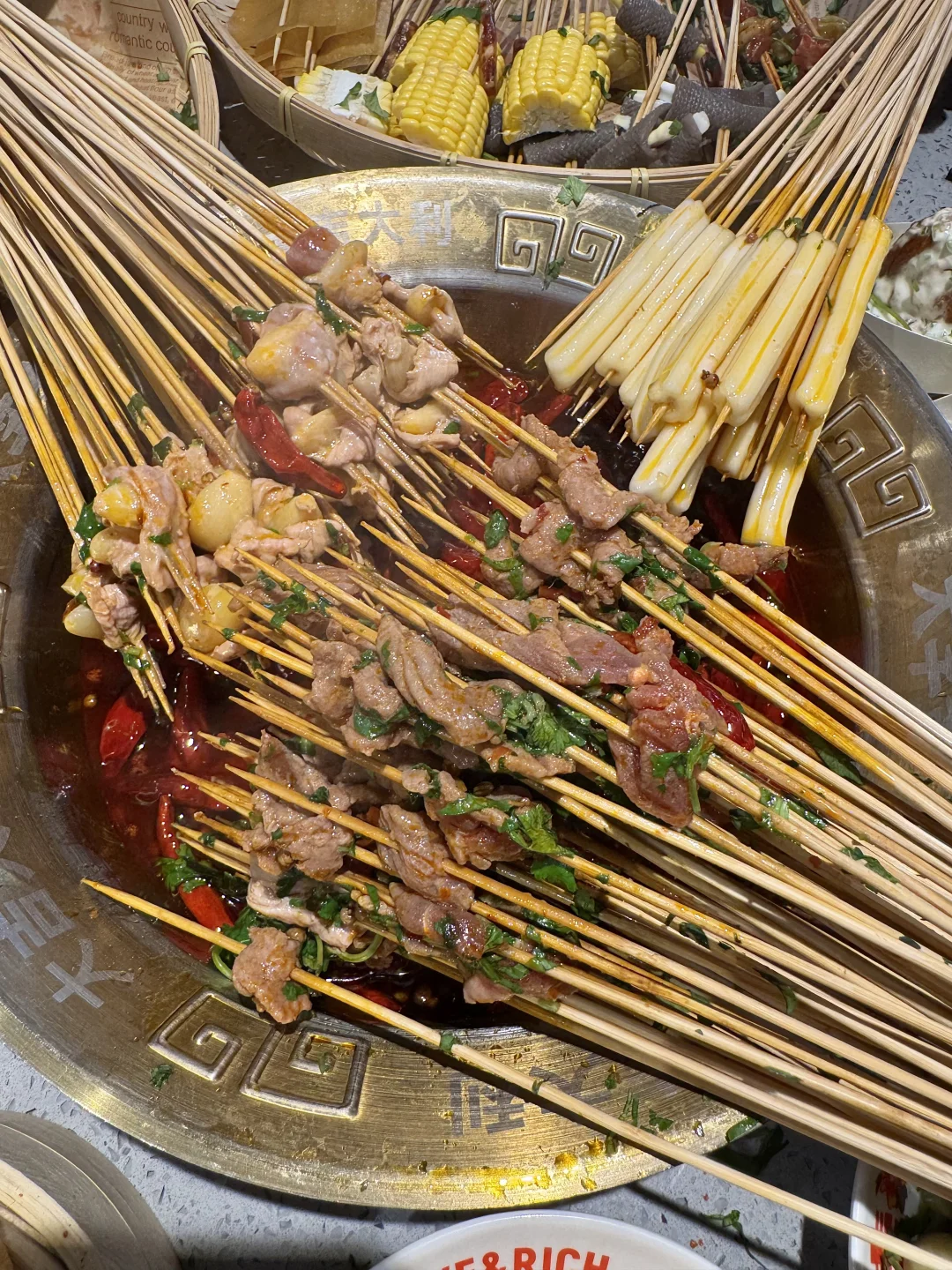 圣诞🎄氛围好足 ~他家的牛肉串串好新鲜,锅底嘎嘎香!!香菜牛肉、糖蒜牛肉香s了😭😭 雪顶草莓气泡、调色盘鸡翅、流心柿子冰、青椒美乃滋大鸡腿…嘎嘎好吃!!