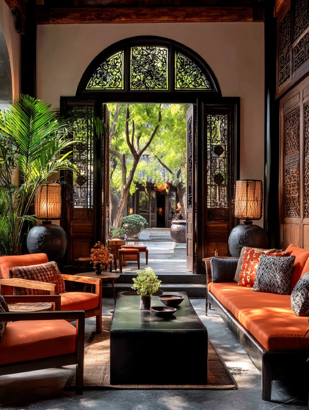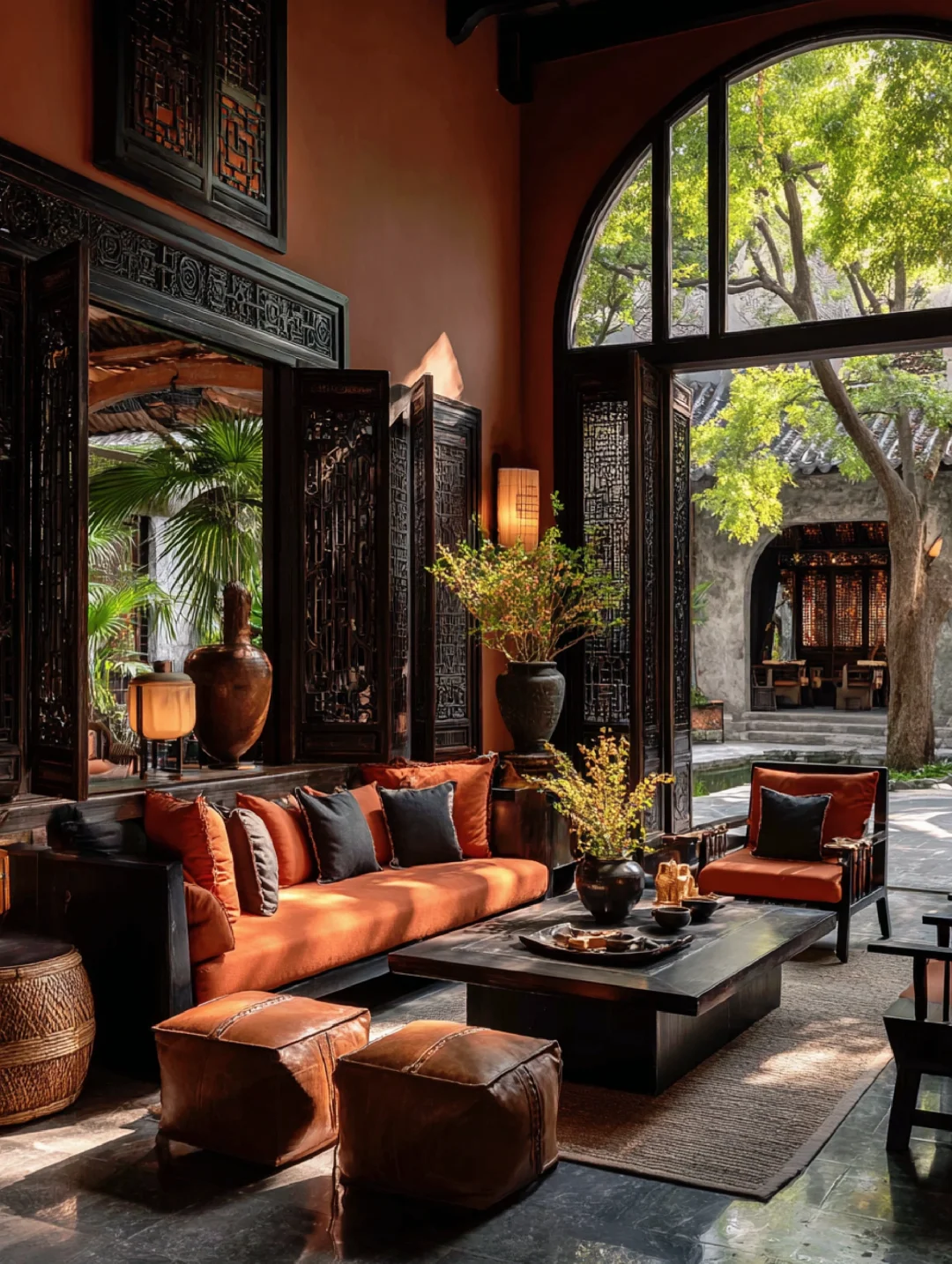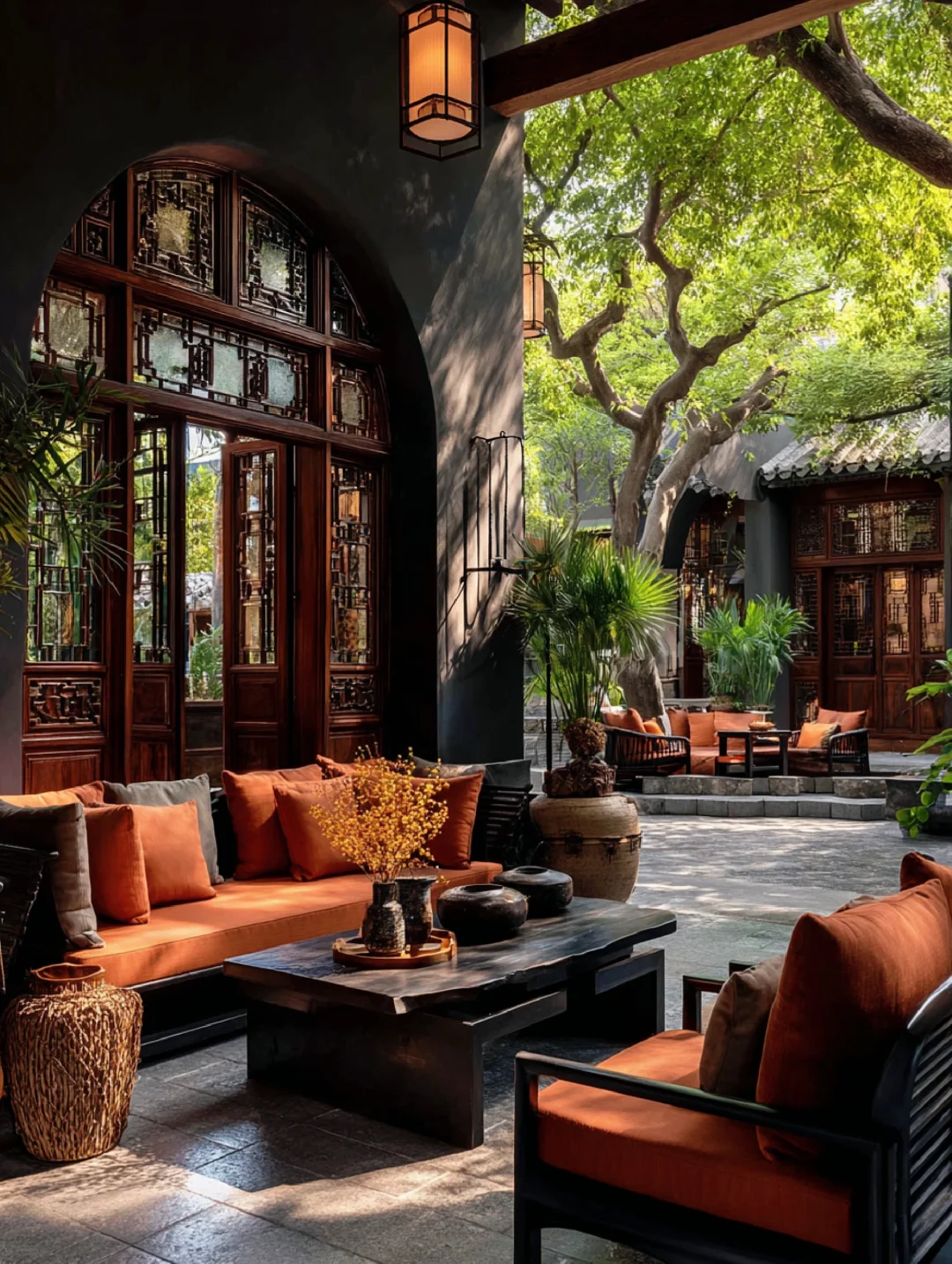 中式庭院从不堆砌奢华, 而是用最质朴的元素,勾勒出天地至美 几株老树倚墙,守着四季轮回; 连漏窗外的那抹斜阳, 都成了诗人笔下最温柔的注脚。 【作品为ai辅助创作】