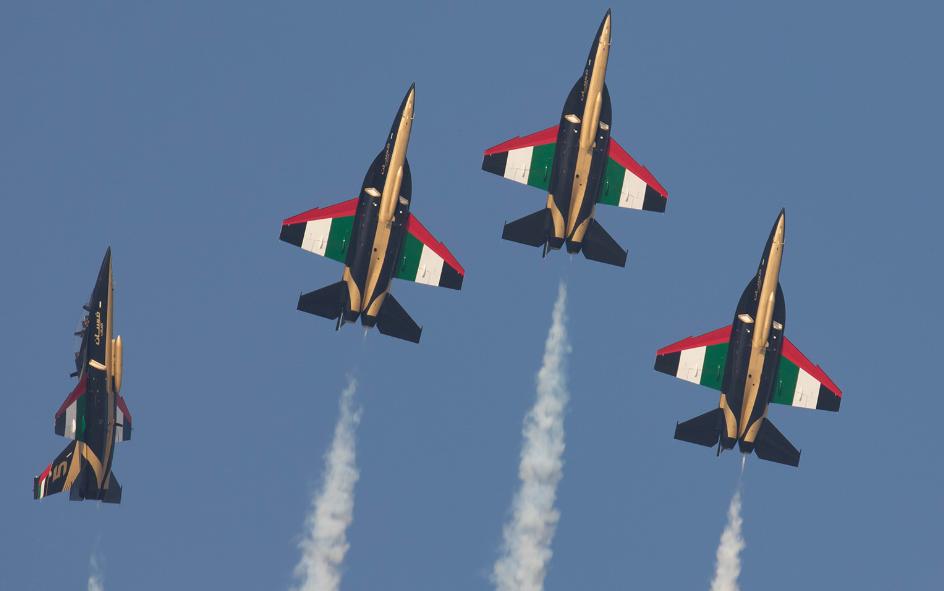 猎鹰15教练机在迪拜绽放! 2025年的迪拜航展彩排上,阿联酋空军骑士飞行表演队