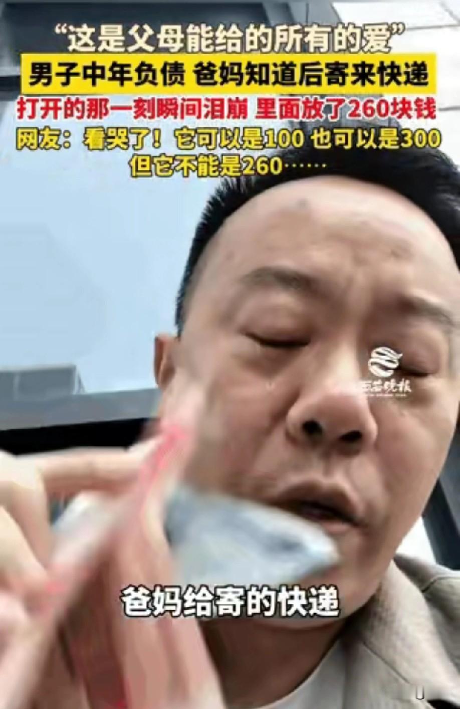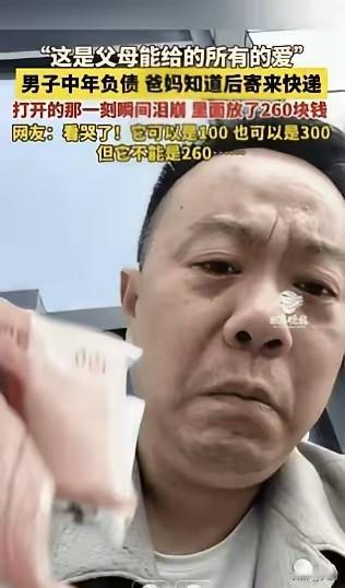 上海,一位中年的男子收到了父母寄来的快递。他拆开包裹,里面整整齐齐摆放着的260块钱。这260块钱,对普通人来说或许微不足道,但对他父母而言,却是倾尽所有的爱。 网友评论:“这是父母能给的所有爱!”确实,这260块钱,可能是父母省吃俭用、一点一滴攒下的积蓄。它可以是100,也可以是300,但偏偏是260元,这恰恰说明,这是父母能凑够的所有积蓄了。 网友感慨:“这是农村的养老钱,一个月130,两个老人260……”在农村,许多老人靠着微薄的养老金生活,每一分钱都来之不易。父母却毫不犹豫地拿出了这些钱,只为了能帮儿子渡过难关。 “可怜天下父母心!”父母的爱,总是无私而深沉。他们不会因为自己生活的艰难而吝啬对孩子的付出,反而会倾尽所有,只为让孩子过得更好。 对于这位男子来说,这260块钱不仅仅是一笔钱,更是父母沉甸甸的爱与期望。它像一束光,照亮了他前行的道路,也给了他重新站起来的勇气。让我们珍惜父母的爱,感恩他们的付出。