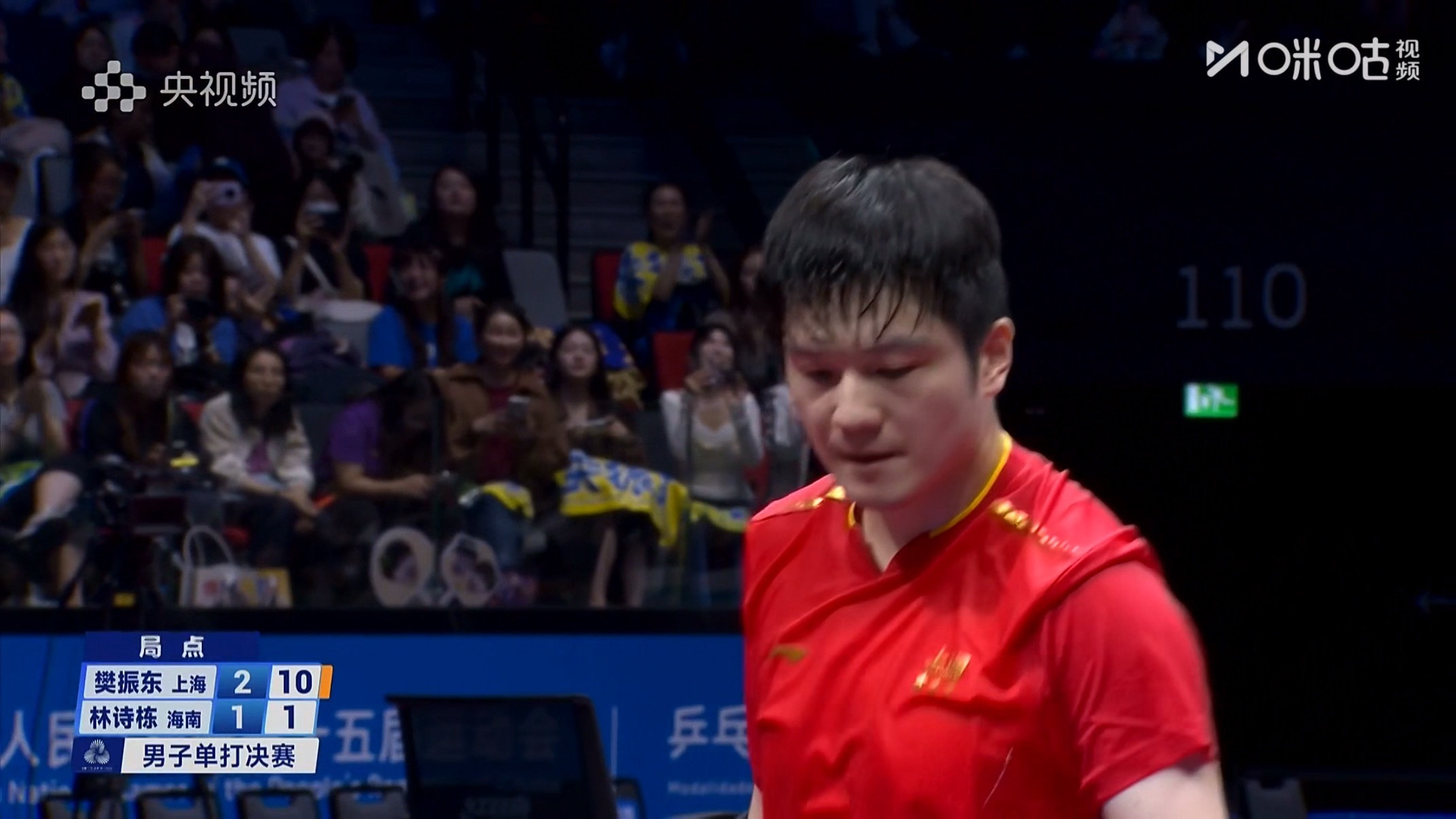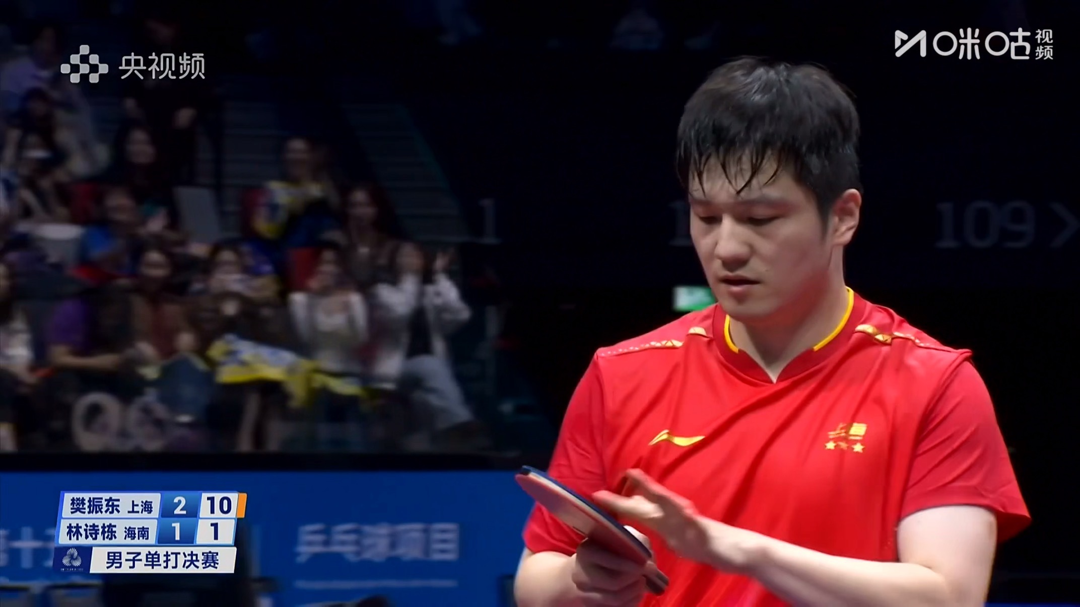 第四局关键局,樊振东一路大比分领先,铜墙铁壁,完全把林诗栋给限制住了,心态感觉要崩了,最终11:3大比分轻松拿下,3:1领先。