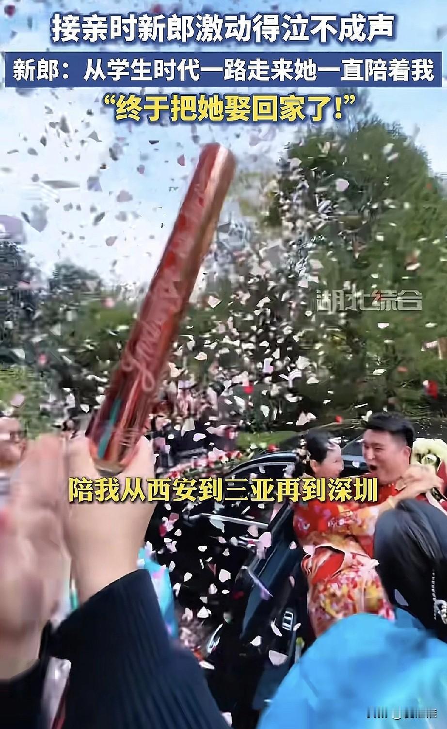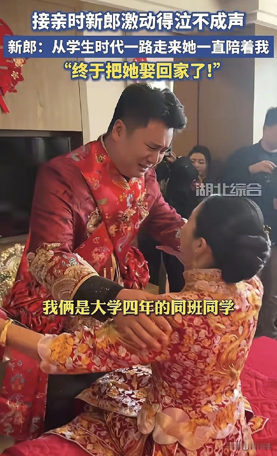 动人的爱情,新郎接亲路上哭了一路,他说和新娘是大学同学,自己是班长,新娘是英语课代表,在校园里恋爱,毕业后又陪伴自己创业,在一起八年了,从西安到三亚再到深圳,无论摆地摊、住隔断房,还是熬夜奔波,她始终毫无怨言,遇到失败总鼓励他“我们再试试”。推开房门的那一刻新娘依然温柔的拥抱着他说“我的大宝贝,你来接我了”。 我觉得八年时光,他们不曾算计得失,而是把苦酿成了糖,这才是爱情最动人的样子!
