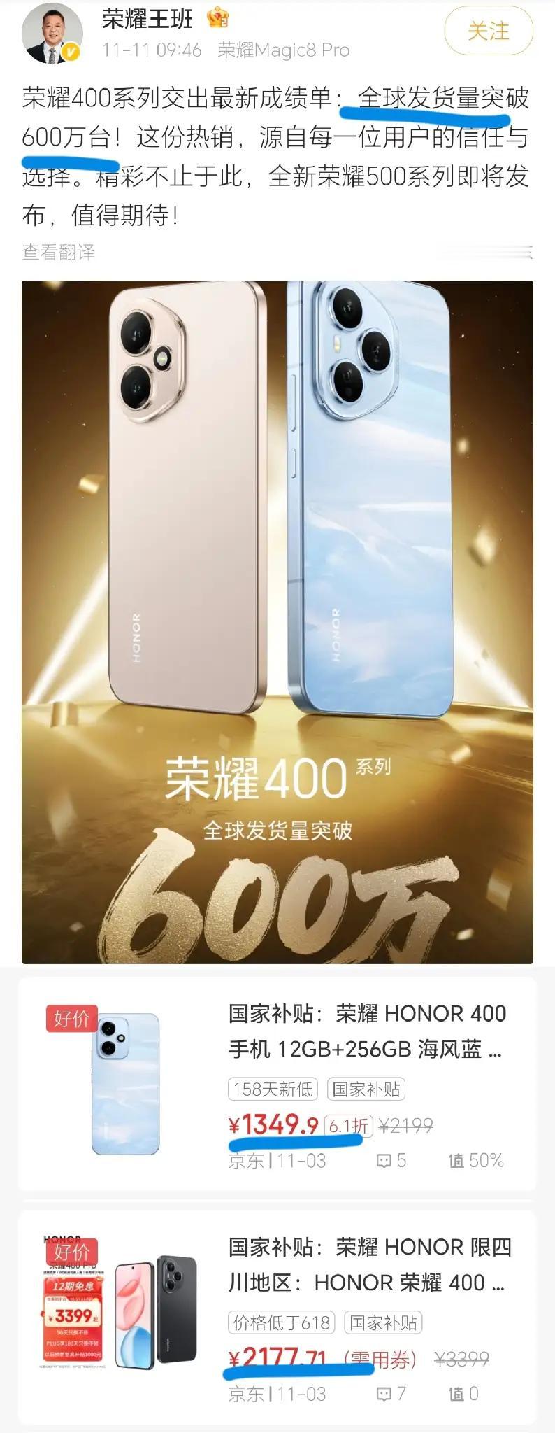 【荣耀500系列,超8000mAh电池能否再创销量纪录?】 大电池,果然是硬道理。🔋 荣耀400系列凭借这一优势,半年全球销量突破600万台,口碑市场双丰收。 而新品500系列继续加码——芯片性能提升,电池容量突破8000mAh,续航表现值得期待。 眼下不少消费者进店就直接询问:“有没有续航特别强的机型?” 看来荣耀在中端市场的这步棋,走得更稳了。