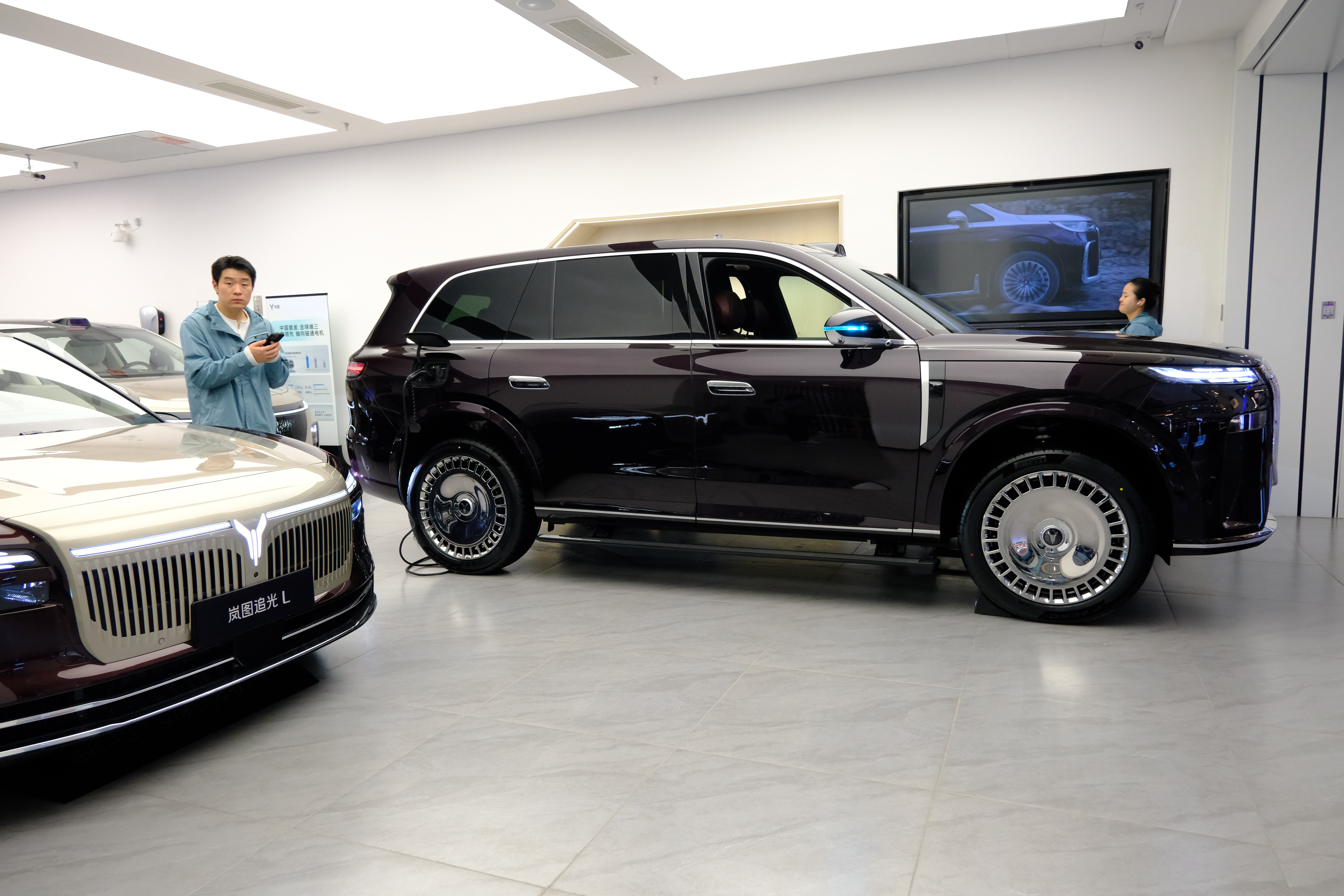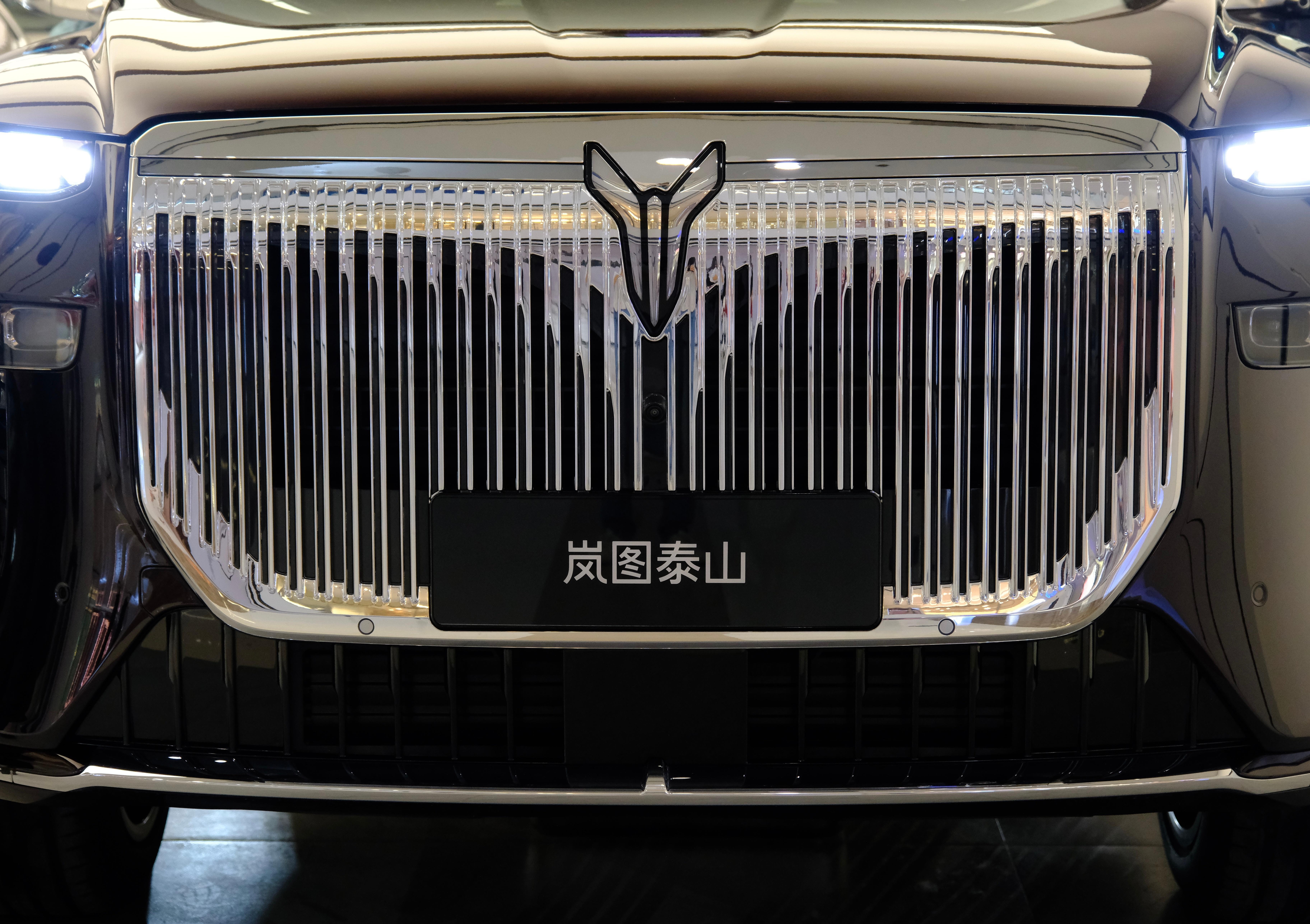 在店里看见了岚图泰山,这车真心霸气,超大面积的中网、高车身、稳重的姿态、圆润的轮