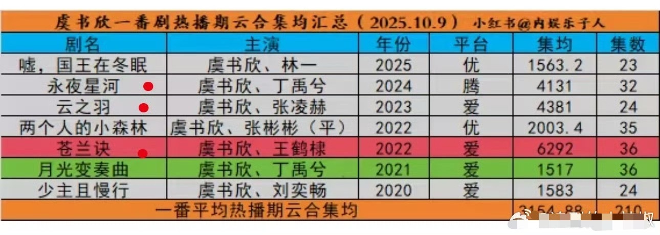 虞书欣一番剧云合集均3100+,她好像只有古装播的比较好,现代就1500上下