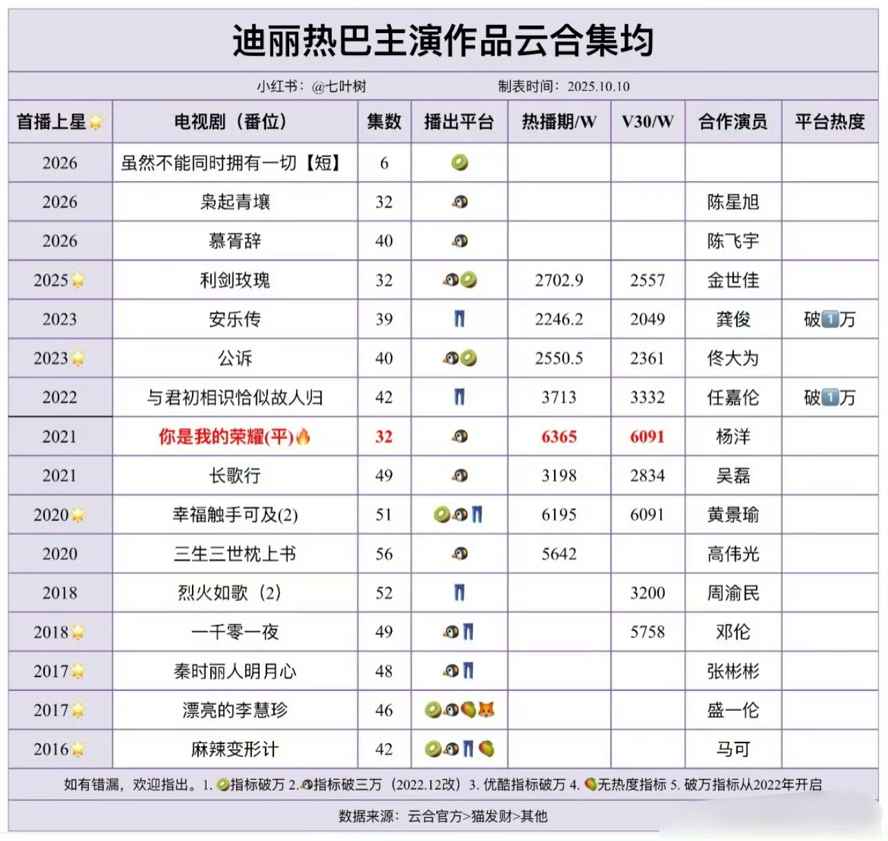 迪丽热巴云合集均4329w,对得起90头部🌸了,也实至名归6000w+两部,3000w+五部,下限也就是安乐传,不过新周期还是得看🐧那两部待播剧,马上就能检验了
