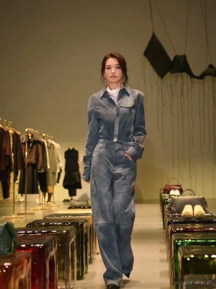 舒淇上海现身BV活动,一身灰调套装直接把松弛高级感焊在身上。她内搭白打底裹得软和,外面套的灰装像浸了雾的牛仔布,拼接裁片衬得肩背线条松而不垮,腰线往上提了两指,裤腿垂到脚踝,踩着黑尖头鞋,腿型绷得直溜又俏。手拿的白编织包像揉皱的奶糕,跟灰调撞得干净透亮。发型是半散的卷,碎发贴在颈边,眼妆勾了细黑眼线,衬得眼尾往上挑,笑时嘴角弯得软和,50岁的下颌线还像削过似的利落![赞][赞][福]