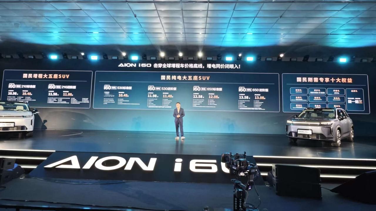 车盟快讯:今晚,埃安首款增程车型i60正式上市,新车还同样纯电动力,限时焕新价区间为10.48万-13.08万元,现在下订还可享全车原厂定制头枕、至高5000元金融贴息、至高5000元置换补贴、自燃烧一赔三等的多重购车权益与保障,增程与纯电版同价,入门即高配,增程版纯电续航起步就是210km,1升油能发3.73度电,这个极致的能耗表现,毫无疑问是能够触动10-15万价位新能源家用群体的,所以屏幕前对埃安i60感兴趣的各位,换做是你们,会选纯电版还是增程版呢?